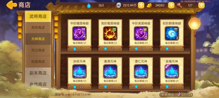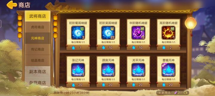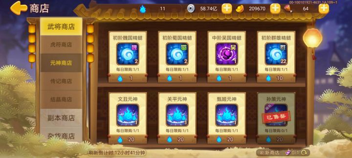 今日份元神商店,果然是前几天的运气用完了,没有一个有用的,就算那个灵蛇元神,我连这个武将都没有买的意义不大