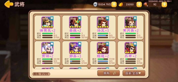 去年过年开始玩的,记录下小成果,累充600多点,30党,最近运气不错两周出了一个诸葛、一个庞统,一个贾诩、一个吕布、一个周瑜,三天后还有一个庞统😄。希望尽快开英杰。