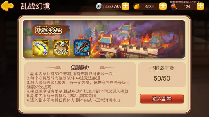庆祝乱战通关,49.50全看第一合剑兵是否能死人,八卦➕一个紫金无轮回,就赌第一合剑技能不死人,我等级176这个诸葛是打不出伤害了。后面乐进姜维黄妹妹董卓司马,毒就行了,第二轮人物上场前一回乐进技能就可以了。多试几次肯定过