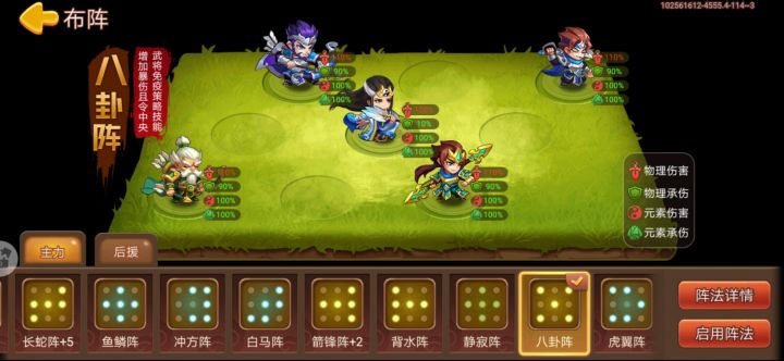 祁山北伐今天打到75了,刚刚摸到点头脑,有俩轮回鞋,一个紫荆冠,用以下阵容,八卦阵和长蛇阵来回换,估计明天还能打几层,有几个敌将挺气人的,带紫荆冠的姜维,还有庞统,还哪位有别的阵容推荐一下,我这估计能打到80吧