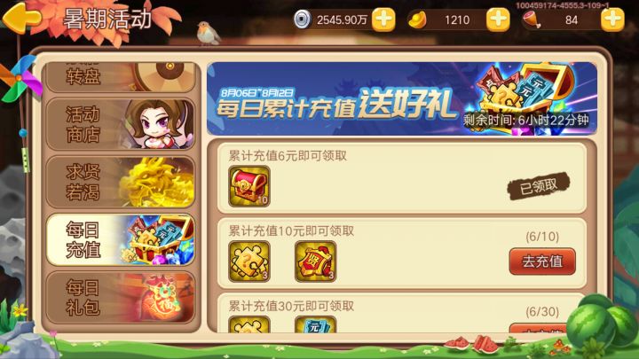 充值搞错了,本来是想在每日礼包那里充6块钱的,谁知一不小心点错在每日活动那里充了6块钱,还不能回档