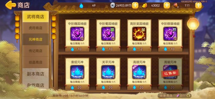 本来是想抽元神碎片的,15000元宝出了33片,还附赠了两个演义残卷,话说现在残卷出货率都这么高么?商店是时候出点新东西了都没买的了
