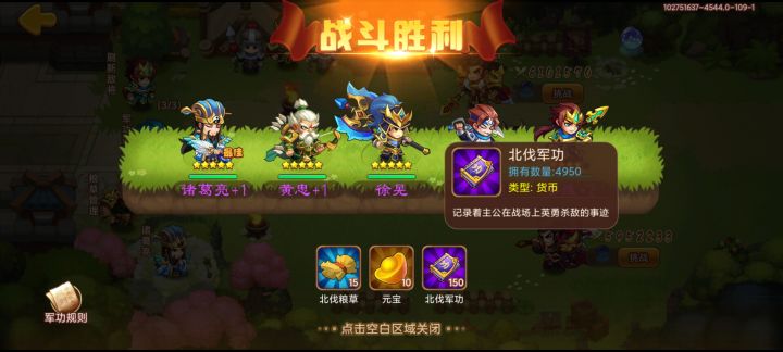 垃圾副本👎🏻,战斗结束只显示掉落物品,其实元宝、粮草、军功都没有实际增加