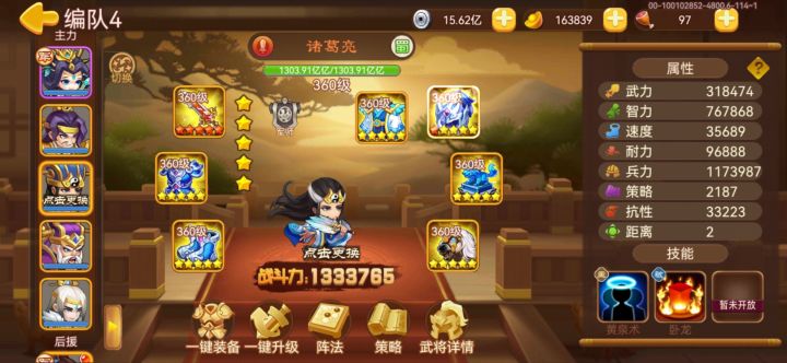 进入战斗后曹植161精通,诸葛95精通,仍然无法1回合搞定。
