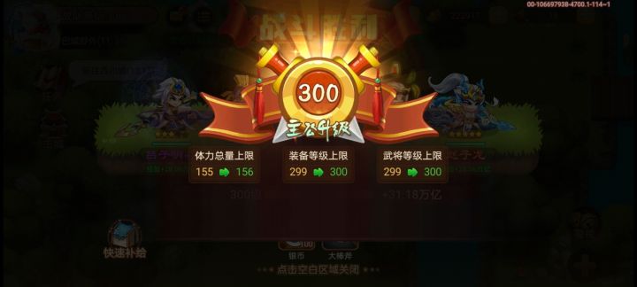 签到1002天,425级,1259周,!神.关羽:输出武力将孙策(吕布),法系曹植(诸葛),辅助(月英),有控有防(董卓),保命(张宝)/辅助将(自己选)血&狼没有神将输出力度不够,2回个打不死基本结束,主力输出武力建议子龙/孙策/变态神关羽/其他神将、辅助张宝/刘备/黄高普/月英……平民基本没戏,可以在我的阵容上换曹植换诸葛,月英换孙坚试试,能过至少都是子龙档!!!一点小建议,如有不对地方,