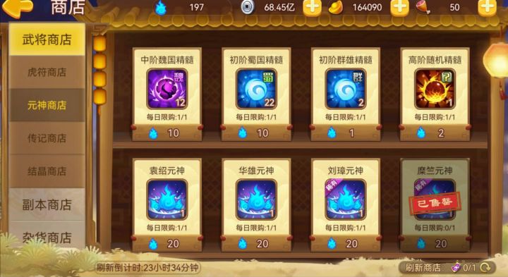 今天没更新前的元神商店,更新后是不是元神顺序变了?是的话只能强刷买张飞、黄月英、南华、貂蝉了。