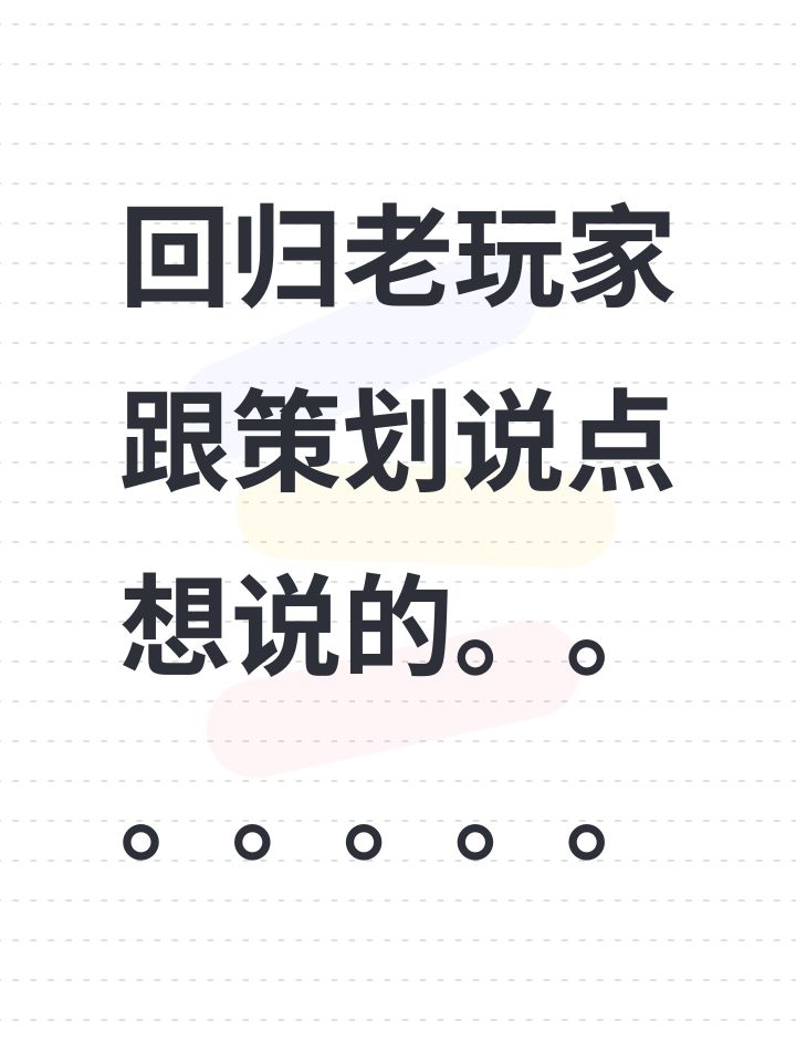 回归老玩家跟策划说点想说的。。。。。。。