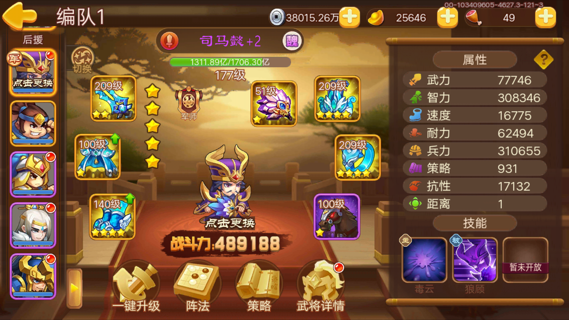 大佬们,这个阵容要怎么调整呢,马超4没有元神,姜维3没有元神😂徐晃4+1,董卓2+1