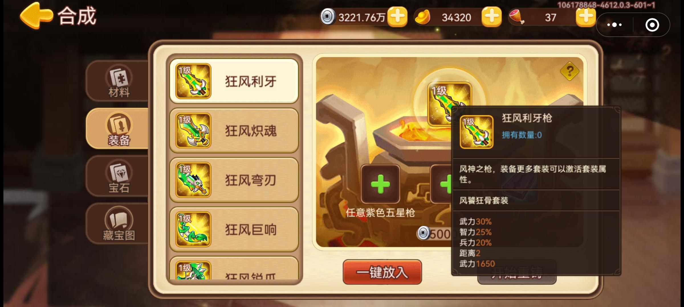 新手好不容易攒够枫林箱子积分开的第一个套装模具狂风利牙枪,但不是自己想要的七星套装之一。请教一下大神:是再等下一次攒够积分就有两个模具分解后再合成呢?还是现在图1直接合成然后领图2的文曲剑模具?如果等的话下次就可以领1件文曲+1件七星,如果现在合成就相当于1件文曲+1件狂风枪请大神们给个意见哈😊