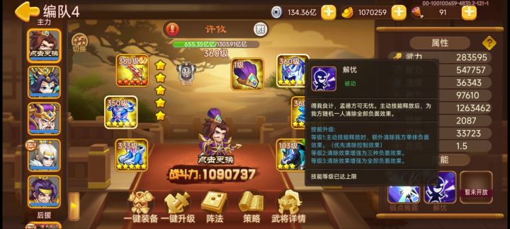 必备:徐晃4星。月英加二最好。姜维加二。乐进加二最好。41能放毒就行。诸葛一套7星。大概25w左右的智力。武将都好凑。第二节就不发了。能打过第一节第二节随便打。乐进不加二。倒数第二个那个丧魂军很难打。有个高配的许诸也行。中间那个5回合会群秒。必须保证5回合物免。不然直接灭队。中间的打死。许诸被动叠起来了。可以一抗四。回血回不满就自己吃药。最后一关熊刚出来可以先集火秒熊。如果能抗住可以刷徐晃技能更稳。扛不住只能姜维拼脸。控制链断了就离间回血不要输出。破阵看情况自己带策略破也行。最后一关三个红蛇需要分次秒。一回合死两个剩下的免疫。看好怪物属性。自爆的设伏和击杀沉默的。离间疑心照样触发拯救设伏。只能靠沉默眩晕控制。还有招降计的百分之15概率真的很感人。尤其是招降熊的时候。有时候10几次不中。