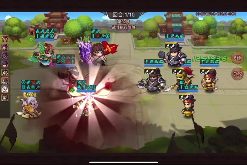 弓兵和剑兵是法术伤害,单贾诩防不住,把上篇100层的夏侯渊换成曹操,装备月套流星(飞沙)融汇引蝶。 打法分析 1.曹操乐进奇数回合开技能,贾诩偶数回合开技能。理想情况是每回合技能都能接上,技能衔接不上就指望对面打曹操吧。 2.剑兵只有曹操技能能防御,贾诩防不了,所以优先击杀。 3.第3回合结束分担伤害的胖子还没死就果断跑,运气好可以像视频那样2回合击杀,赌1/2回合都触发流星。 4.击杀顺序——剑