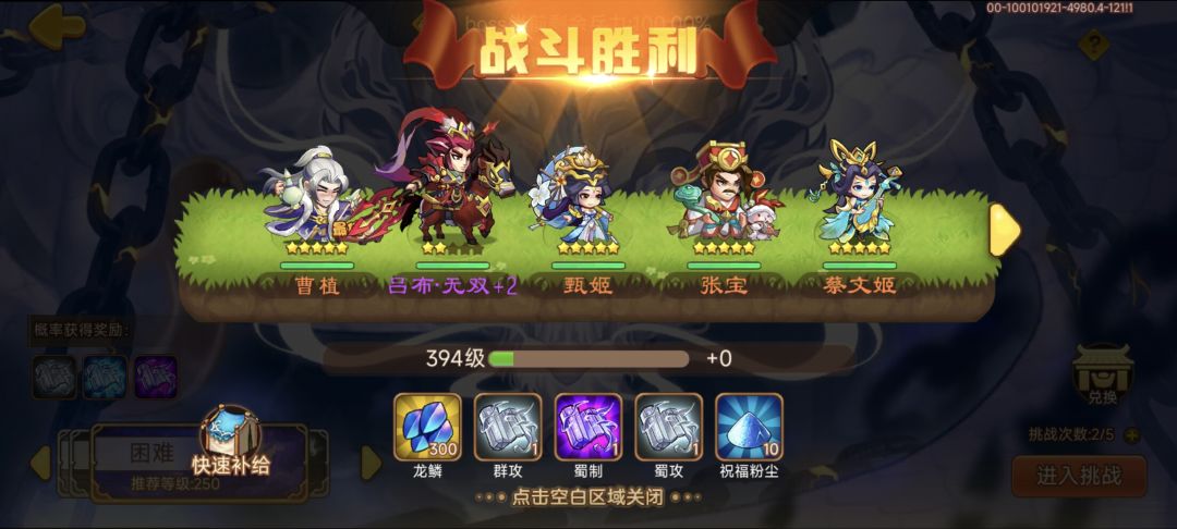 之前都是玩法师,物理打boss太路边了(七星穿云:我跟义绝、止啼、子龙怎么没感觉到),一直没给物理资源,还看错张飞被动了,以为一回合提升一次(勉强挖出来能用,还要削了真不是人)。 ①应龙小怪血很厚,平民没伤害需要降距离让它自己扣30%血,反正前面也输出不了,正好能让张飞典韦叠被动(张飞典韦:怎么是蜀中无大将的意思,我俩不是万人敌?)。平民单输出还是不行,需要个副炮,就这样选出来了张飞典韦。 ②阵容