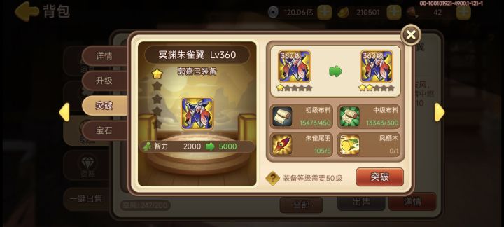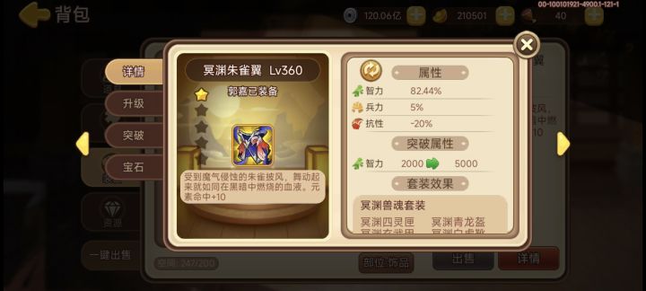 朱雀翼可以花元宝选择武力还是智力加成,而且培养成本很高,二星就要特殊材料了,如果想玩极限就选它。如果不想用白嫖的朱雀翼,就用蝶套替代,这时候送的冰套箱子,选戒指还是头就无所谓了,不过