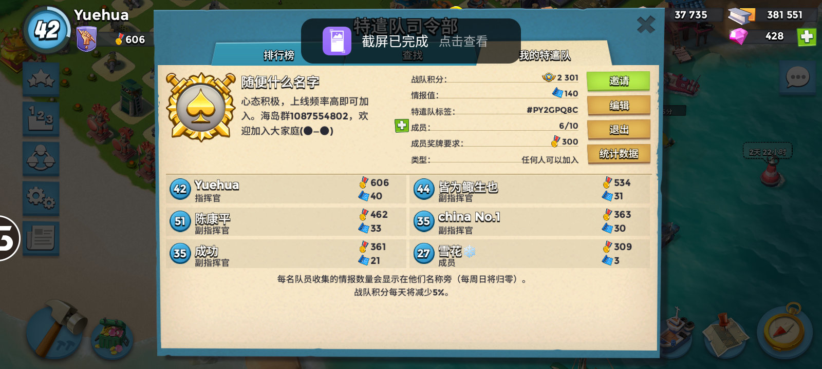 10特遣队招人啦😄,平均300杯以上,每天打打小任务,有专门的海岛群聊天!欢迎大家来