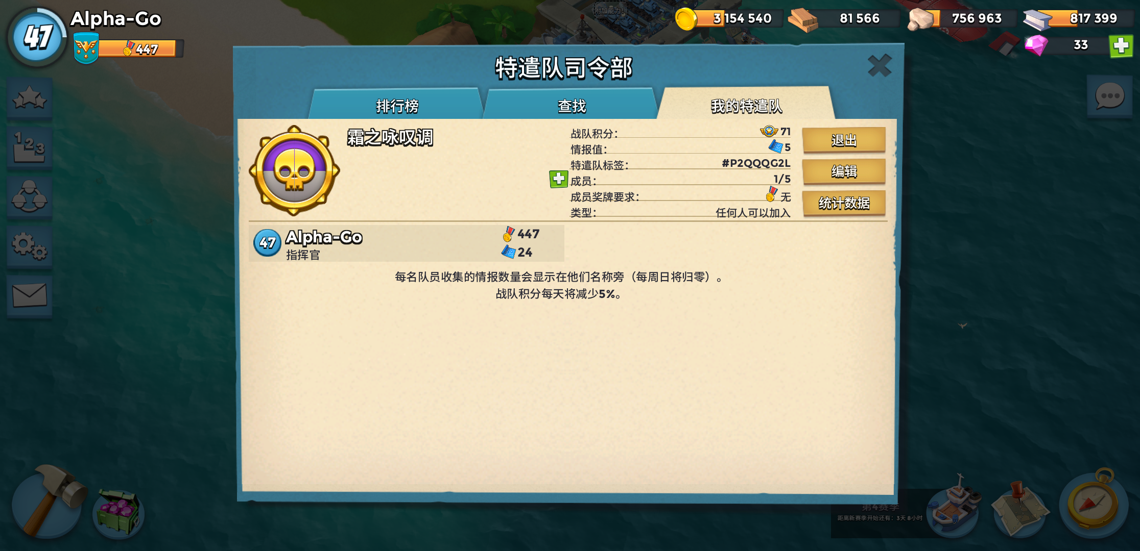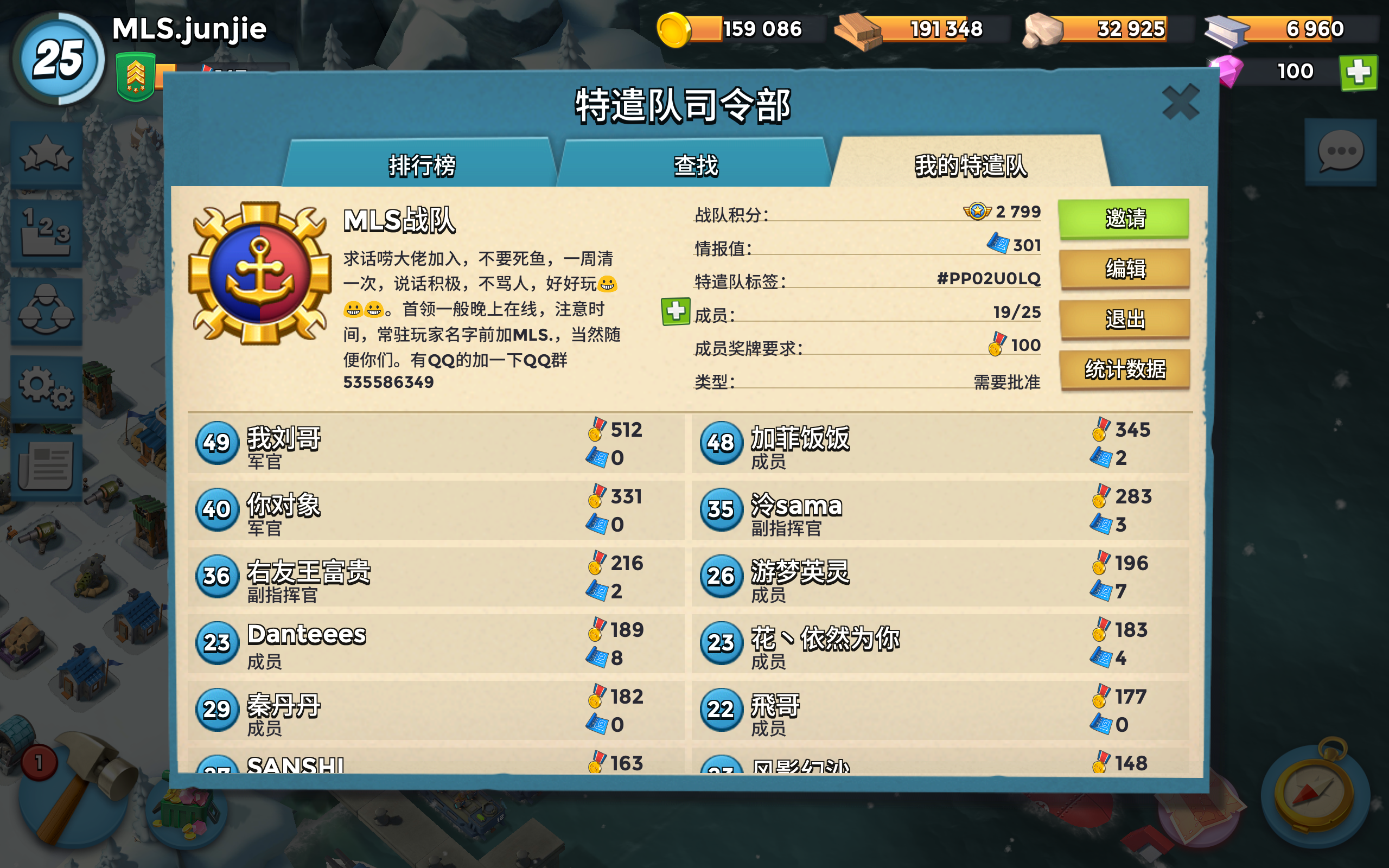 战队实力不过,需20本以上的大佬支援,战队任务天天开。[要进战队的加下QQ群]