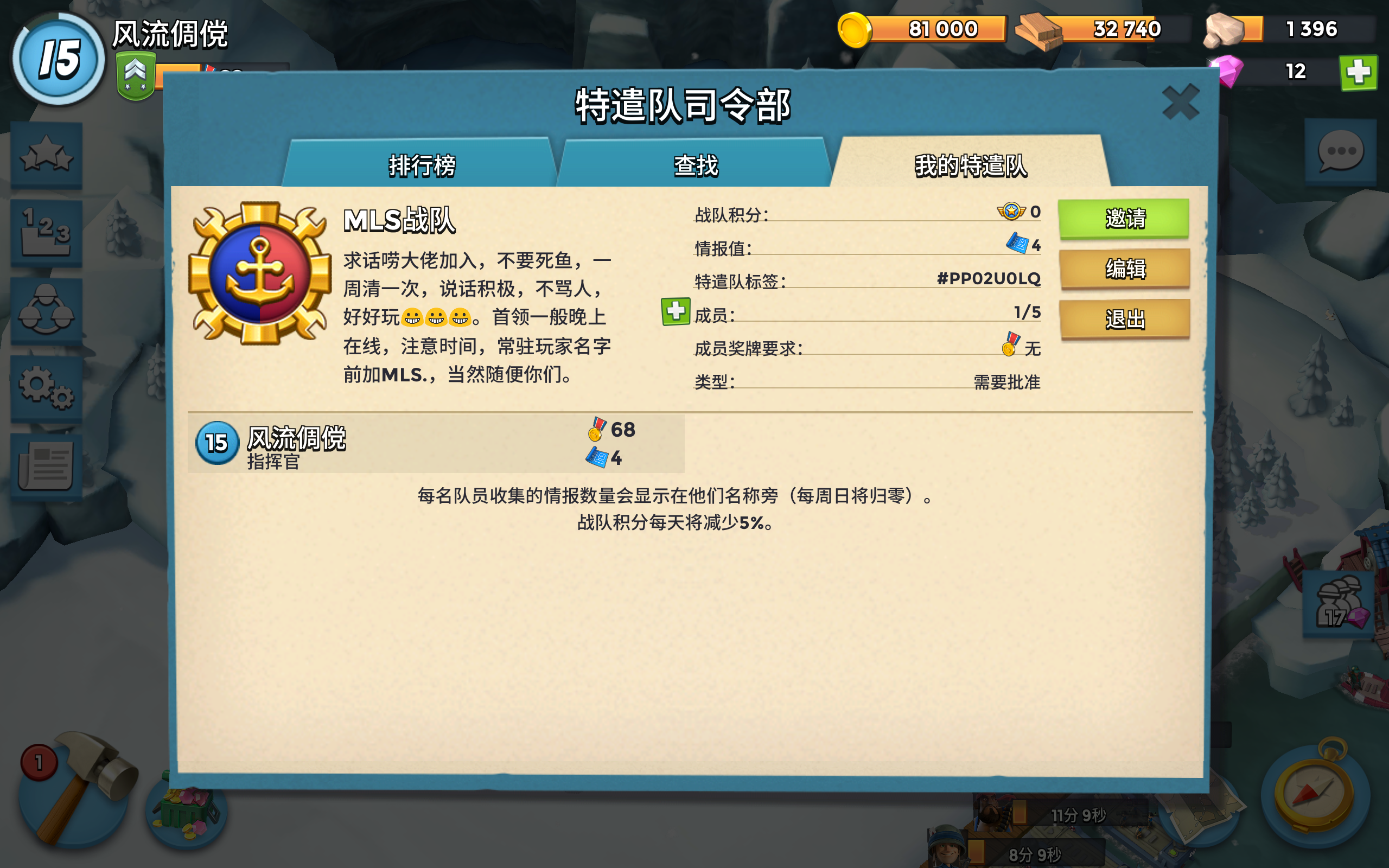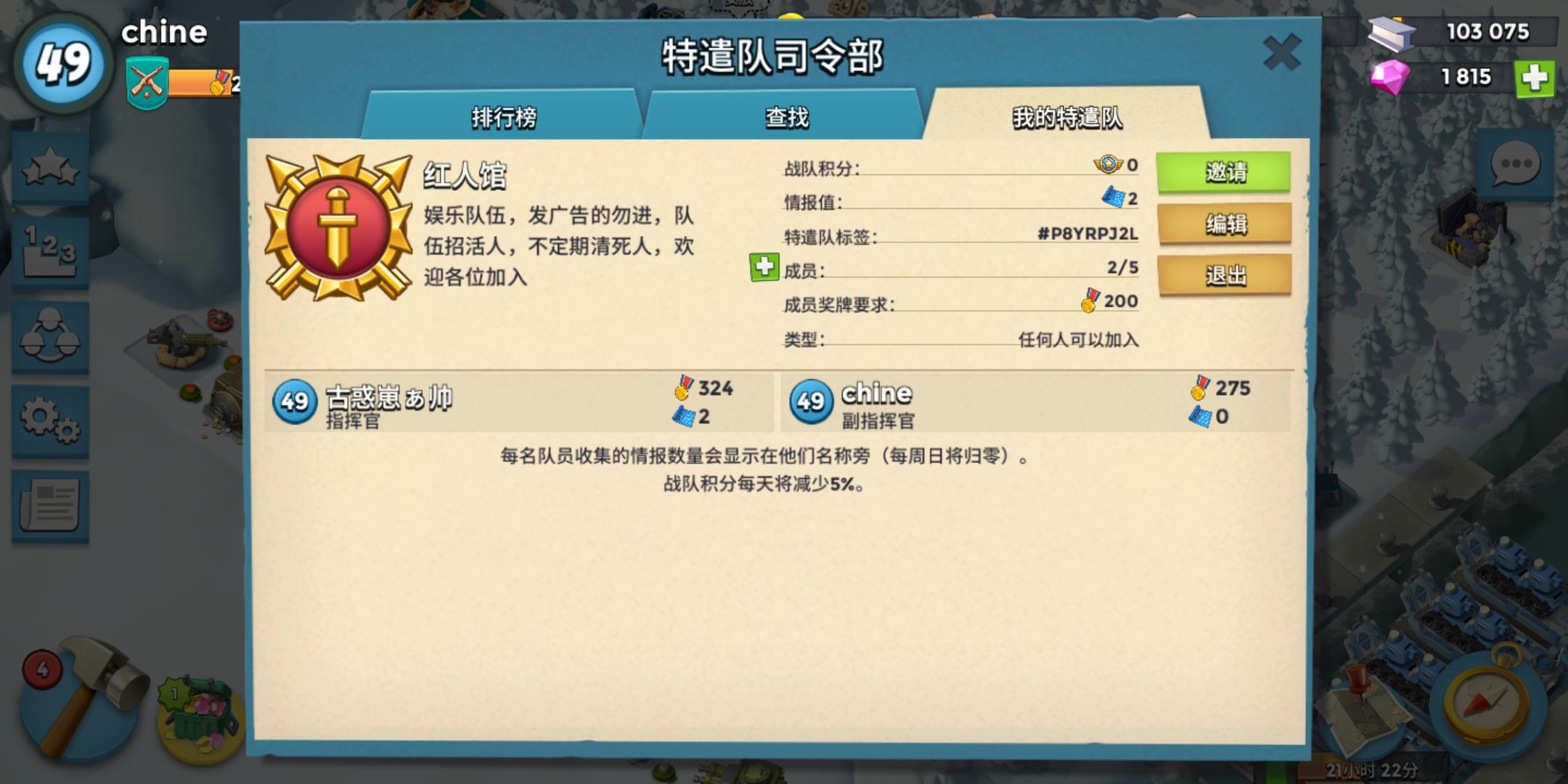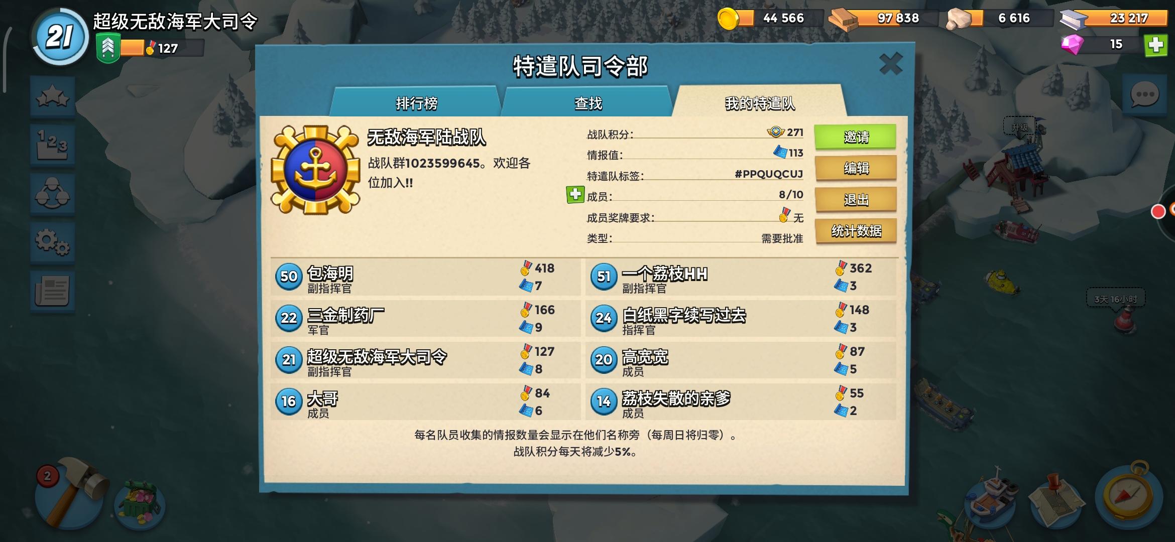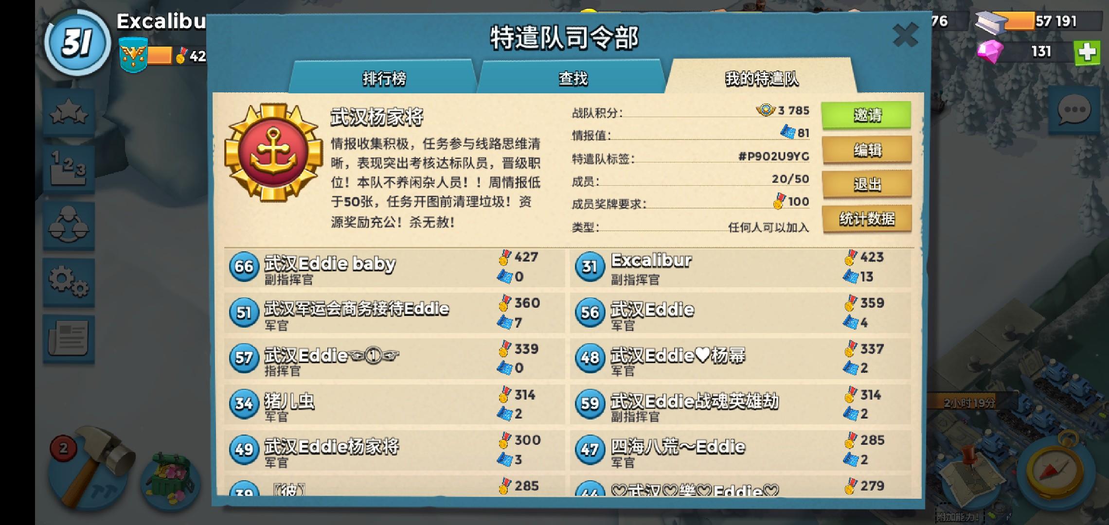 特遣队招人,现在排名3000+,任务每天开,欢迎老哥们加入,最好在40+,奖励能拿到手软