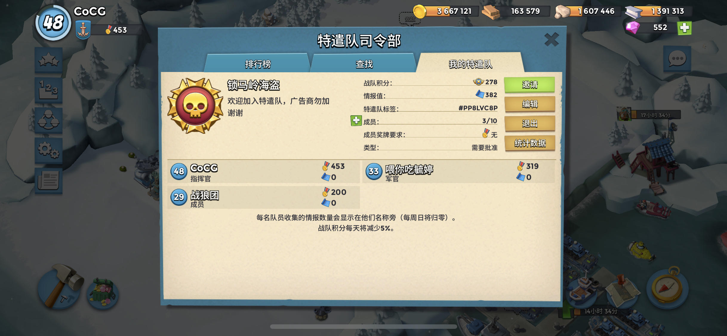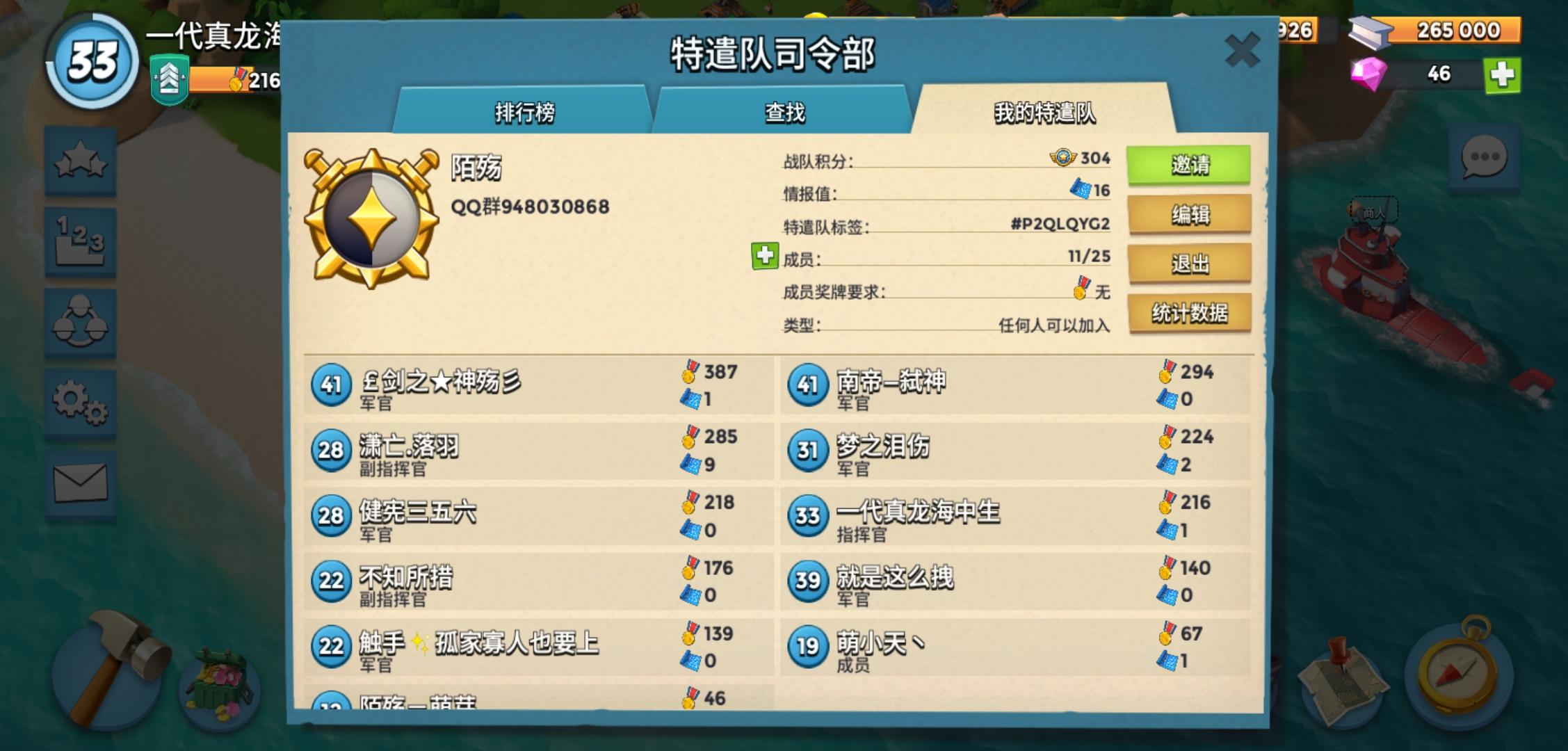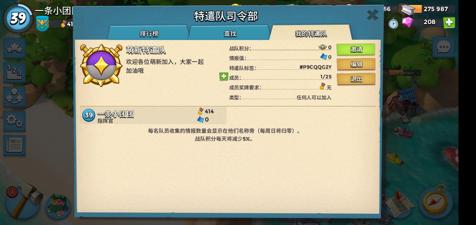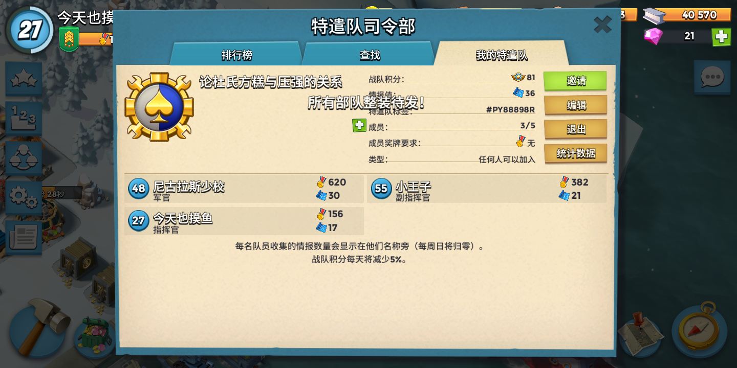 好不容易玩到三十九级,想自己创一个特遣队,大家如果有兴趣可以加入一起玩哦