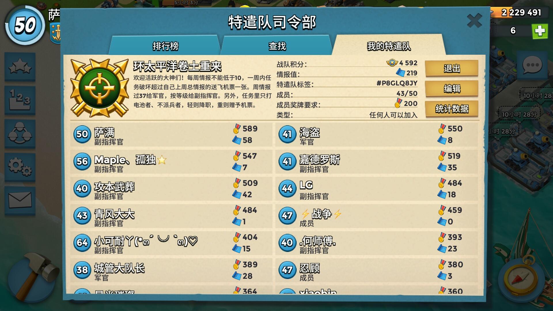 特遣队招人!待遇:钻石每天10+指挥官联系可向指挥官建议要求:司令部等级: >10情报: 无要求(情报第一当 副指挥官!)活跃: 每天可在线QQ:2143602383可在下方回复谢谢!