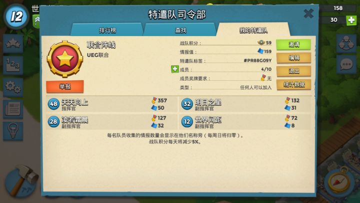 欢迎新朋友,搜战队名:金陵十二钗,休闲养老的进队,打情报就可以了,不用打任务。