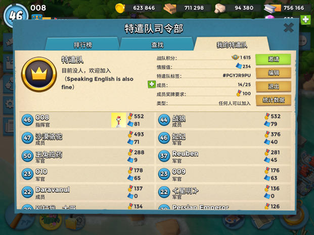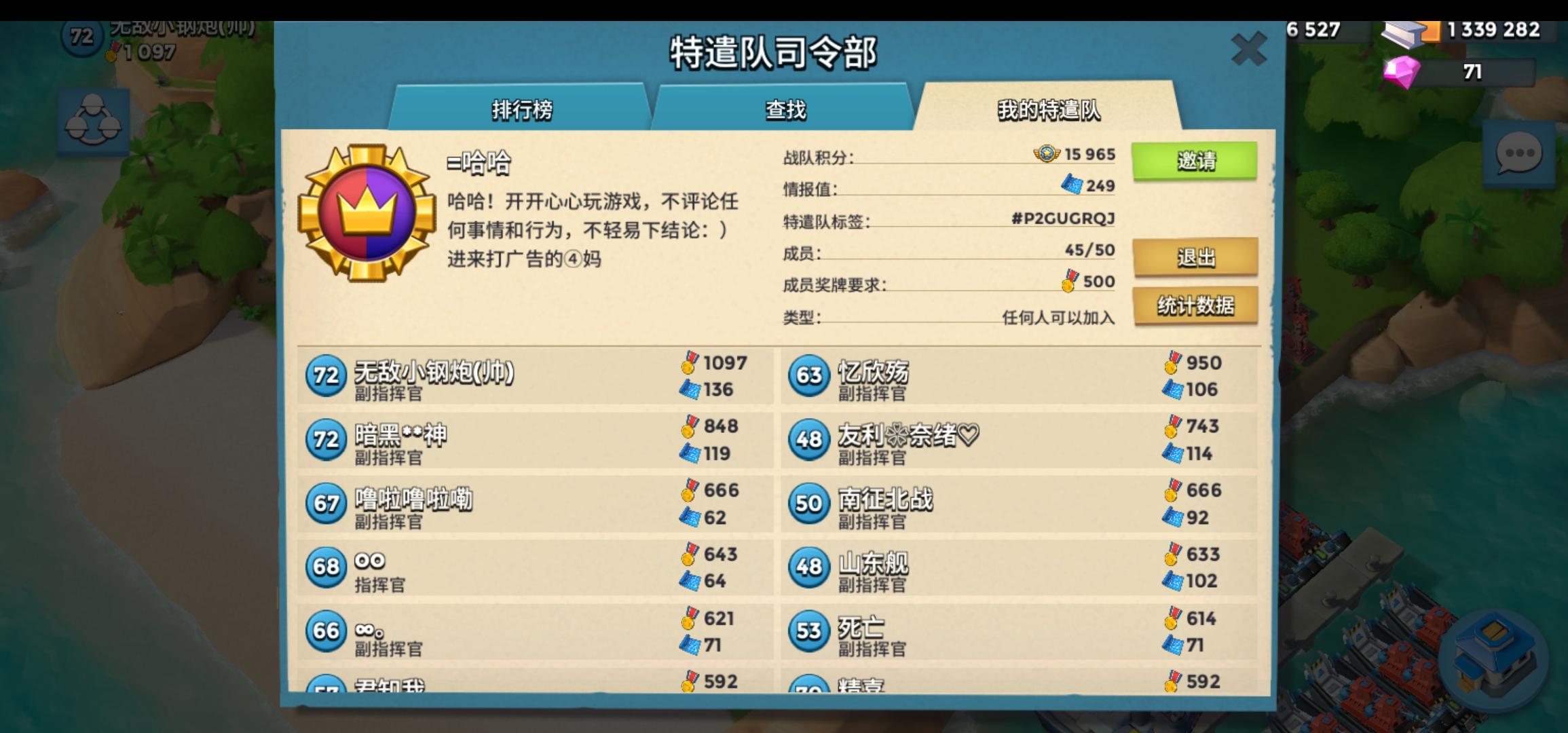 特遣队名:粉碎四人邦标签:#PPGGRCCL战队福利:发红包(每次活动解释权归魔术师所有)招人要求:任务活跃,妹子大佬,满级鸭坦,策反手,高能号,情报手指挥官QQ:3173452546有意愿的来,注意遵守战队公告