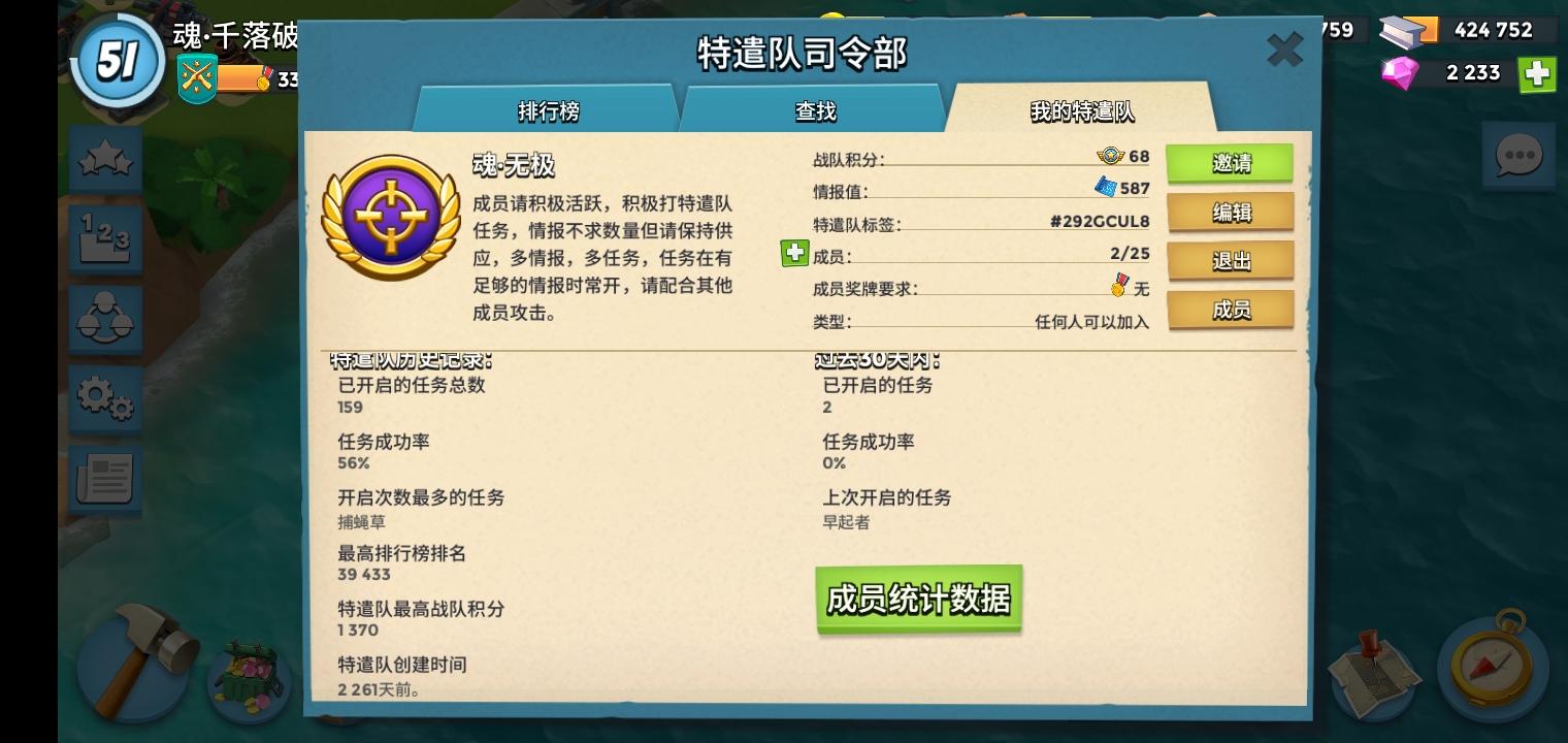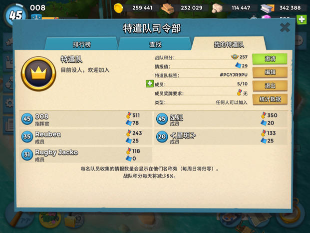 本人大学生在线时间长,这两天已经在taptap招到几人了,需要扩充队伍,开学季打的少可以理解可以进队说明,本人会根据做任务人数每天开任务,欢迎大佬萌新的加入👏