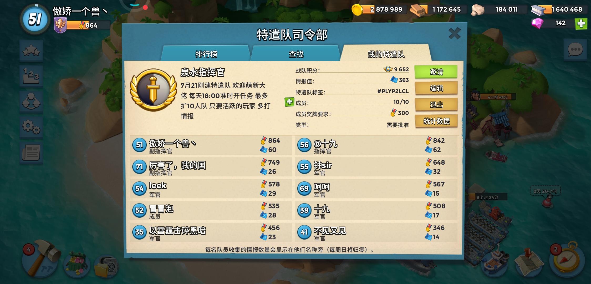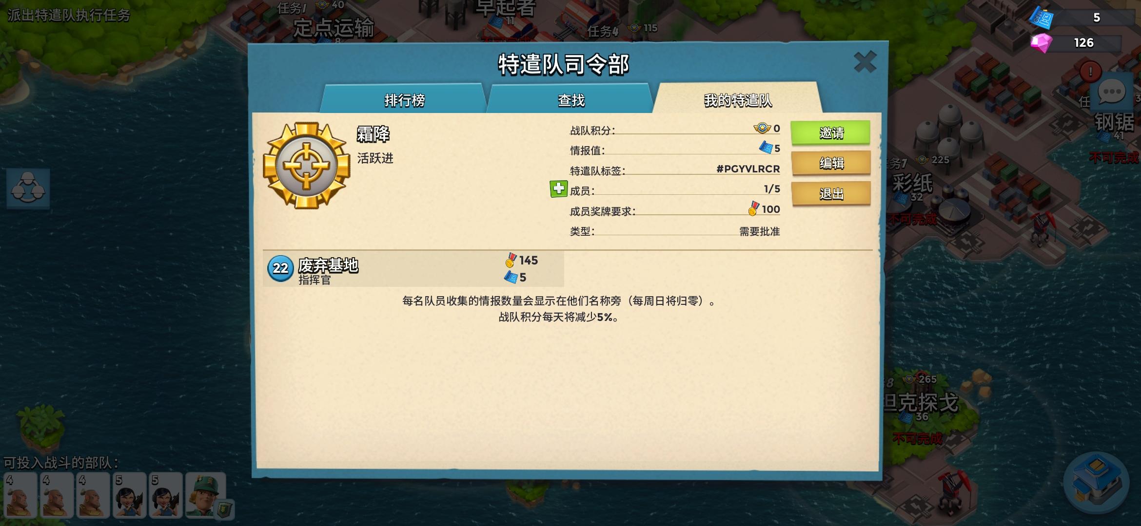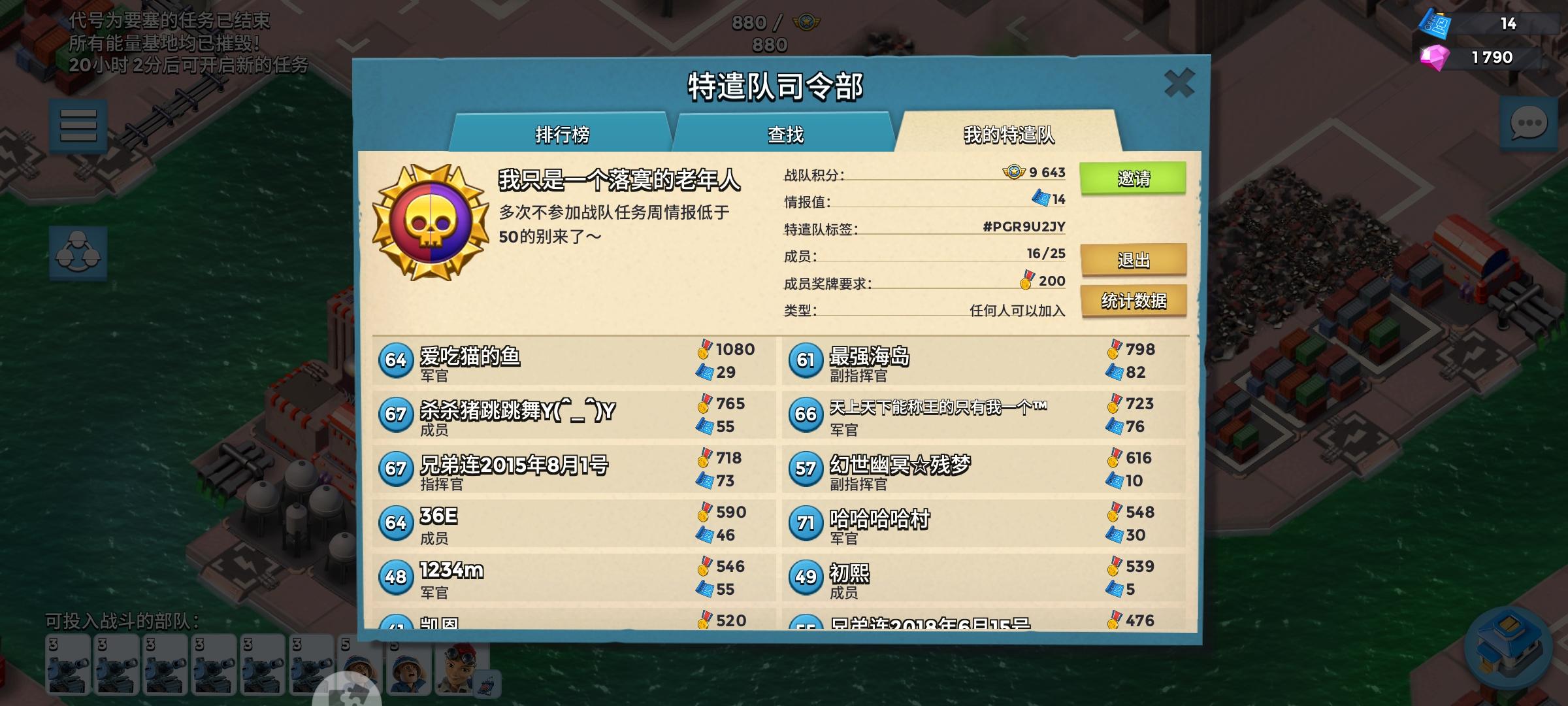 #海岛奇兵# 敢死队特遣任务,收人,队名搜(长生歌),准备开荒喋血,快来情报神妹神,有奖励的哦,进队加微备注佐手哥推荐(看图),,其他休闲战队来活跃就行看图,