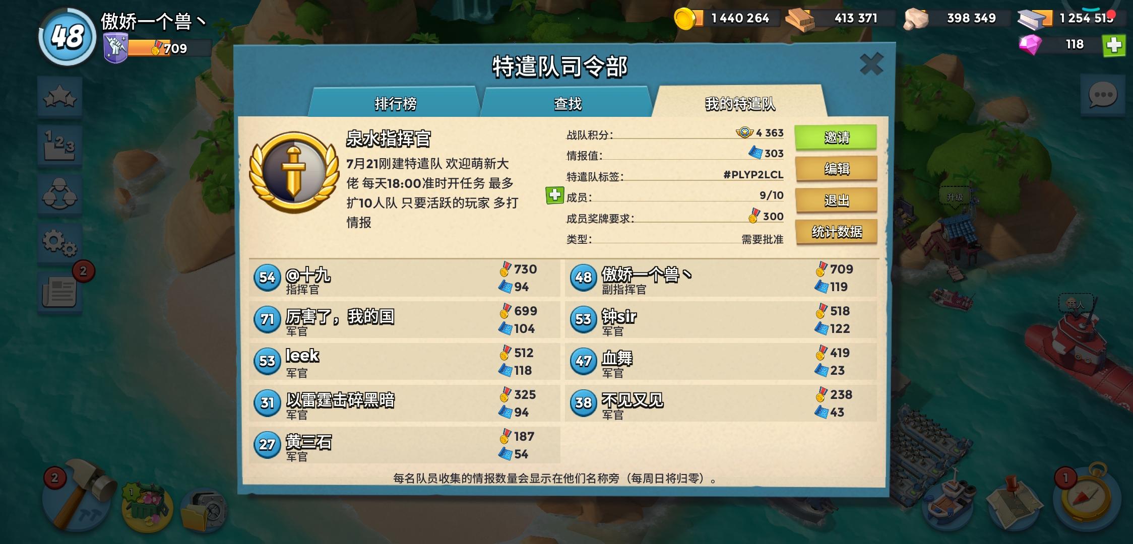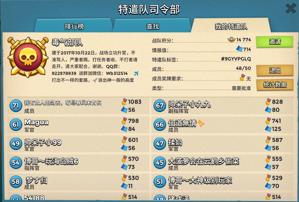 战队七人,周情报都能达到100左右。完全是给力队友啊。还有爱玩的朋友欢迎加入