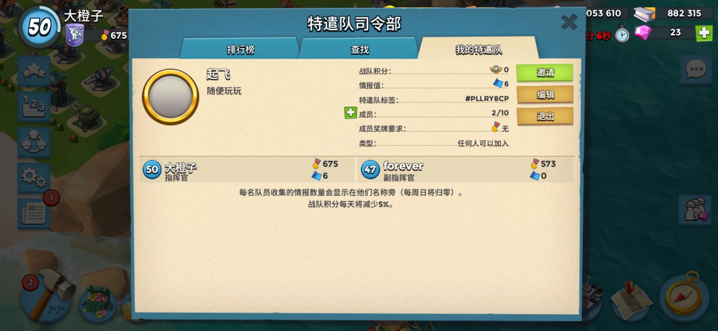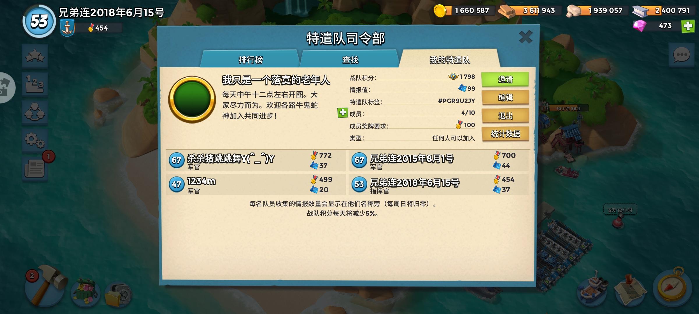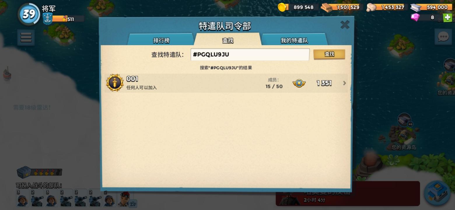 来加我们海岛奇兵,特遣队,我们这里非常活跃,全天在线人数达到20人,周情报可以达到500,希望大家都能加入😃😃