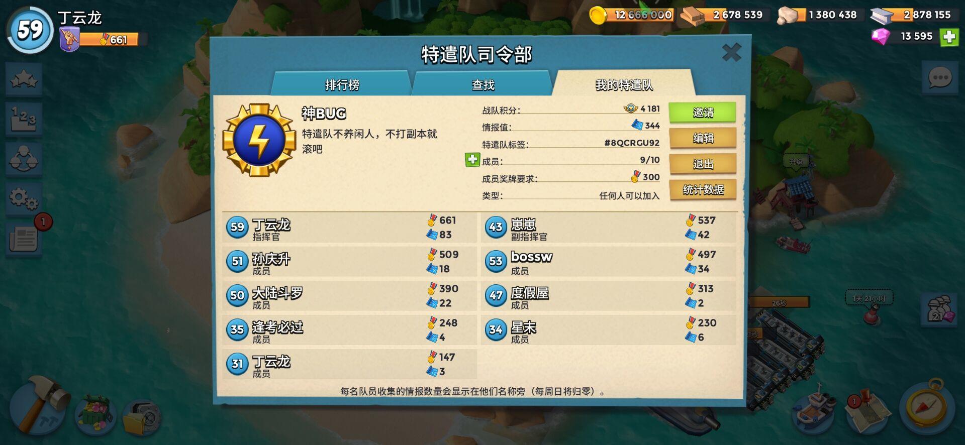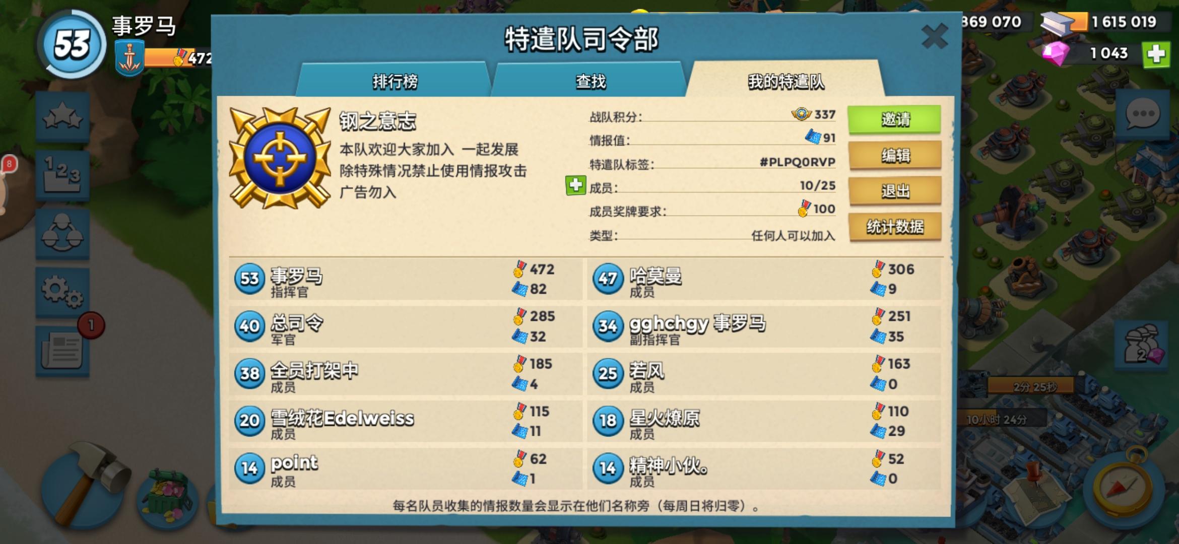 50人特遣队招人!欢迎各位大佬加入战队名称:耀诚-希尔顿进队要求:周情报60+战队规模:50 战队开图:1110~1410想加战队先加我 🐧:2188615842 每天25+钻奖励周情报180+躺钻