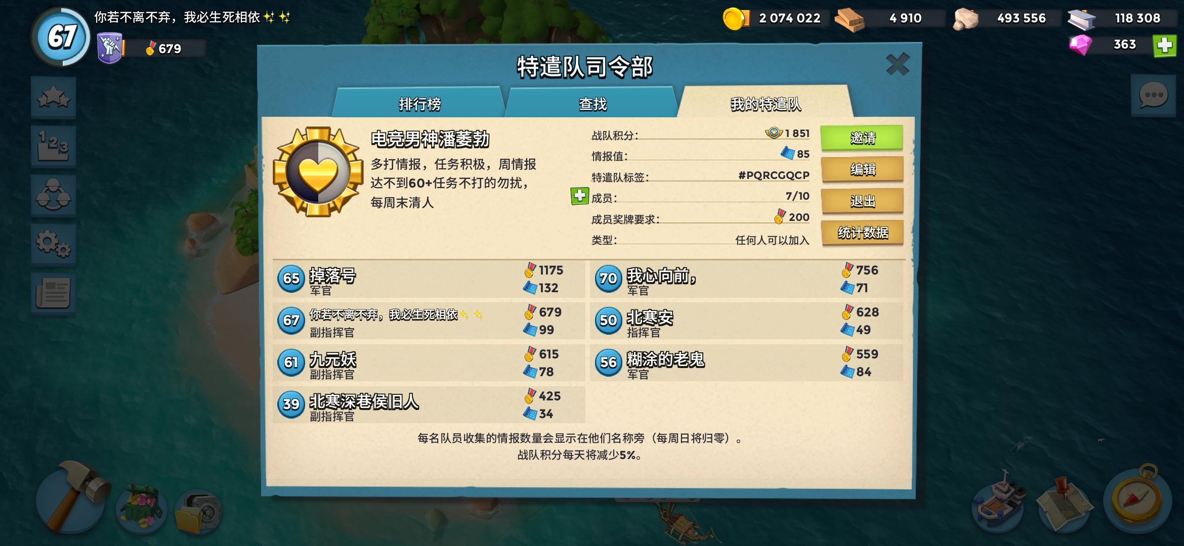 10人新队招人,要求50级以上,周情报60+,每天20钻以上,战队名称:电竞男神潘萎勃