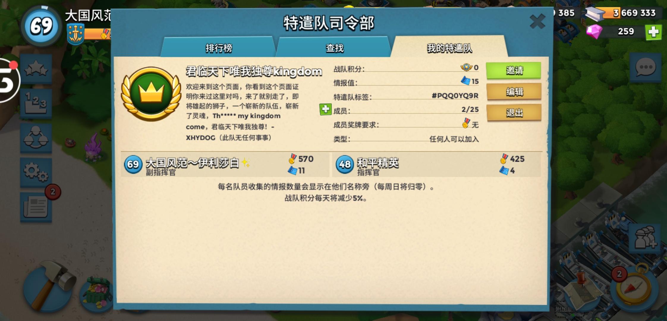 特遣队招人,欢迎大佬和情报帝加入,刚从10人队扩到25人队,急缺情报,所以等级稍微低一些也没有关系。情报最重要ahh,毕竟没情报啥都开不了