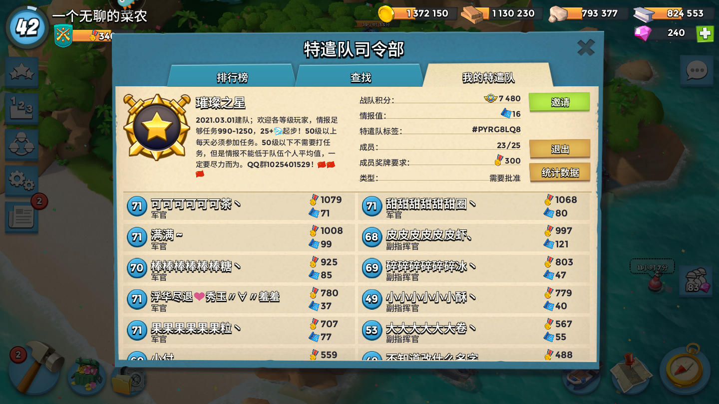 战队(低俗的感觉)招人,欢迎大家加入。刚扩到25队,急需人才。来的人任务认真打,不得敷衍,情报15+