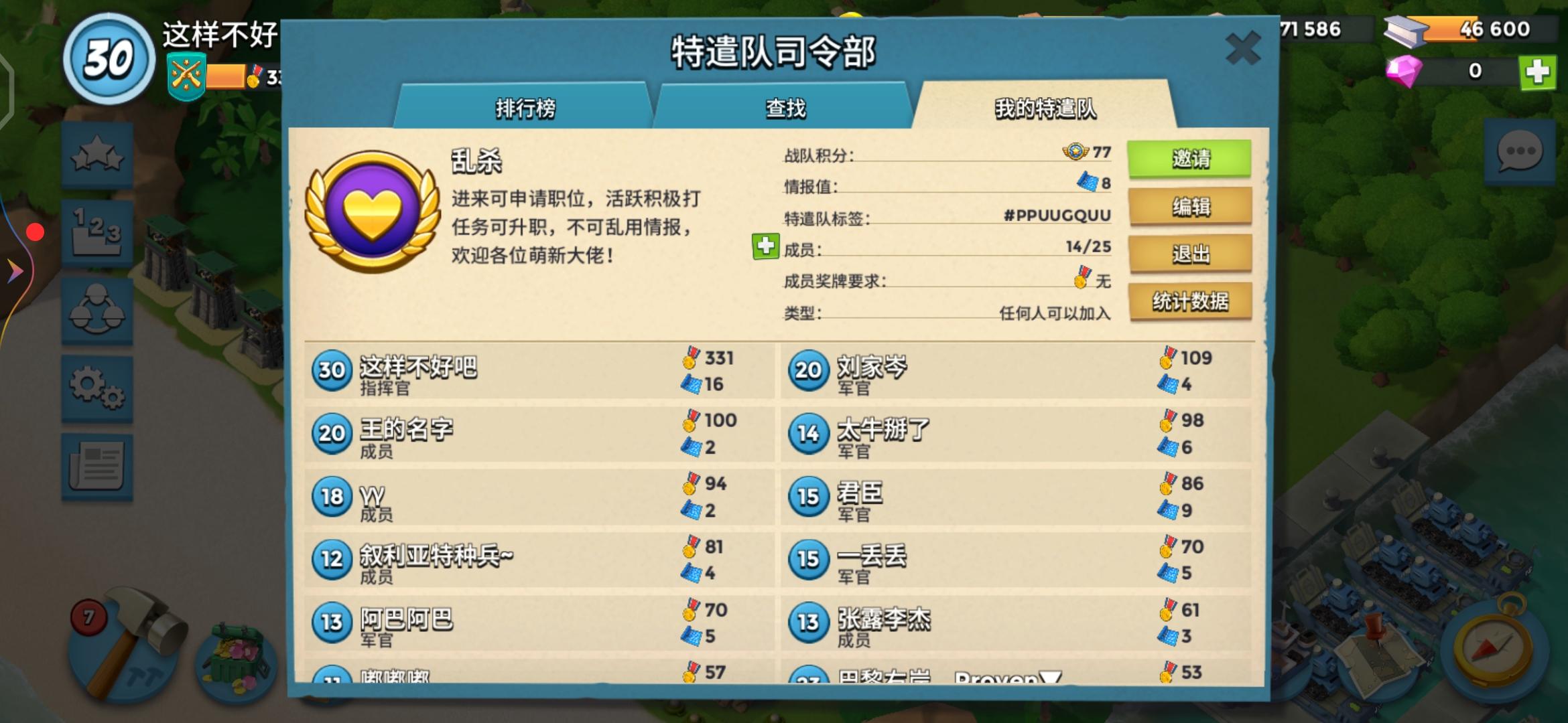 只想搞个五人队,每天准时开任务,多少情报打多少的任务,估计17钻还是可以保住的~欢迎各位兄弟姐妹过来玩