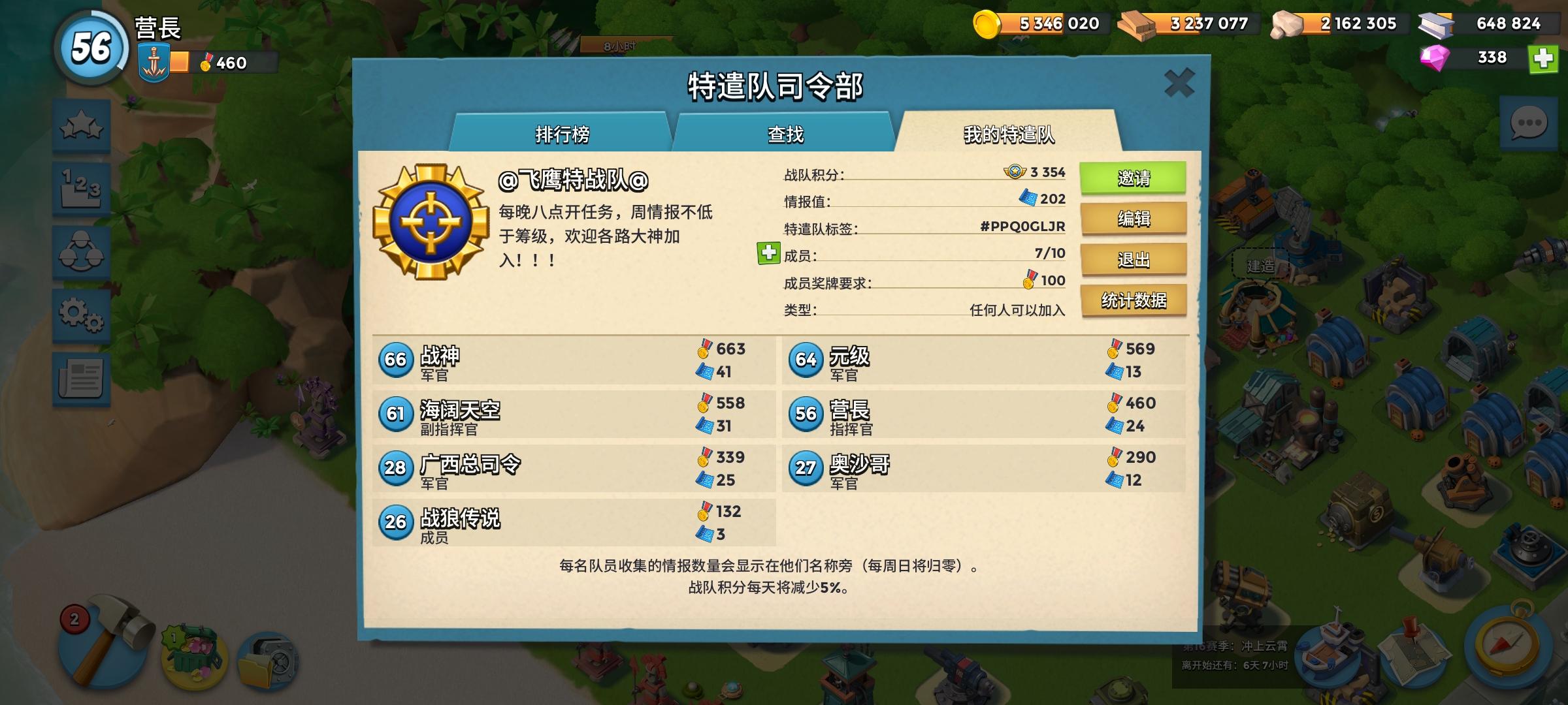 特遣队:织心 队伍人数:50人 副本等级:24钻石咽喉岛990 杯数限定:400杯 介绍:招收活跃的,即使满员了也会经常踢不活跃的,满了可以留言、私信约坑