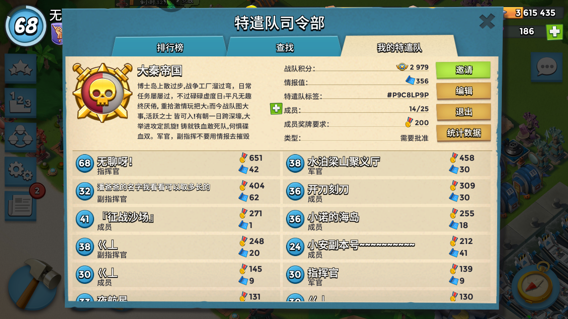 特遣队名称:酥软曲奇饼干ゞ特遣队标签:#PPQUPVLG加入条件:积极参与特遣队任务,等级低的朋友可以清路或者收割特遣队简介:欢迎海岛奇兵热爱的玩家,最好是能够稳定上线的,一起发展,一起交流。🙌
