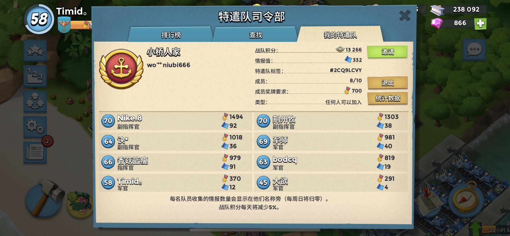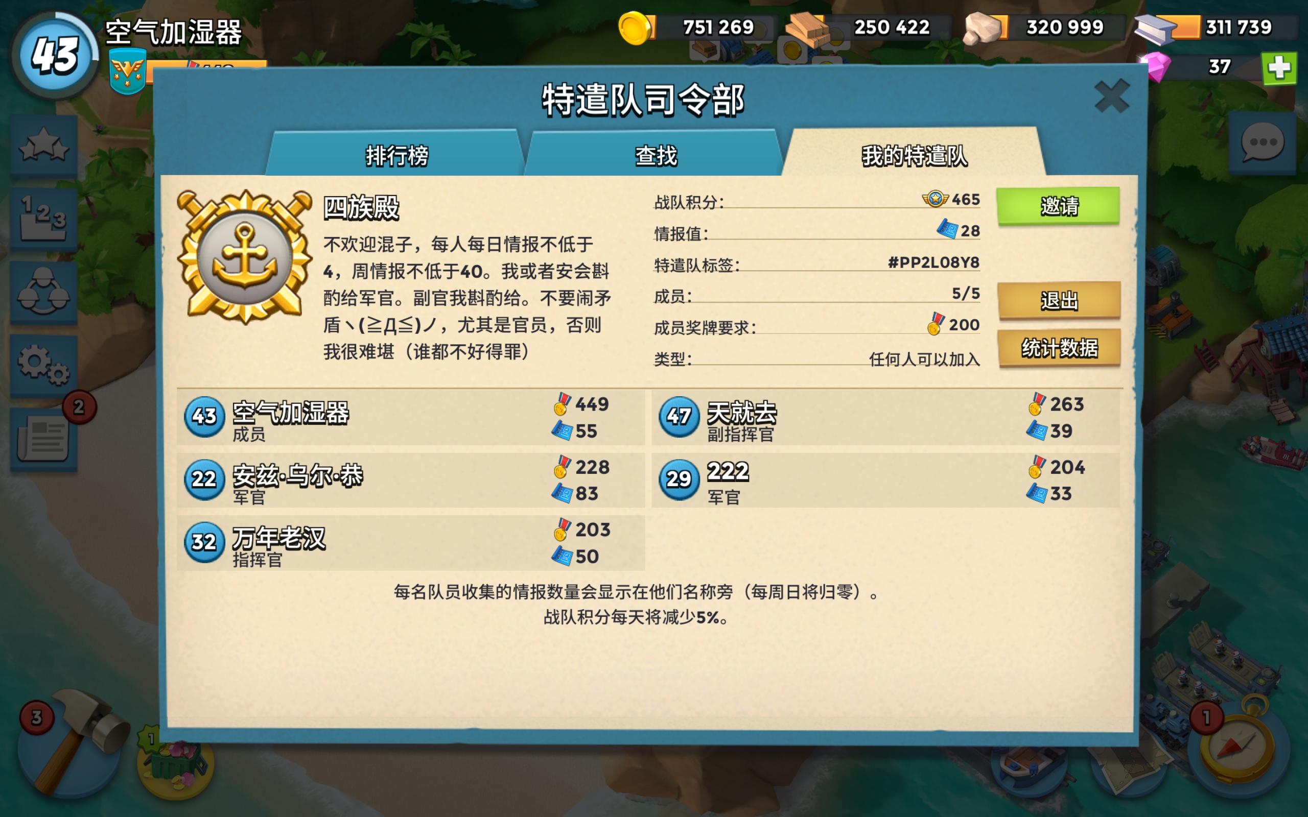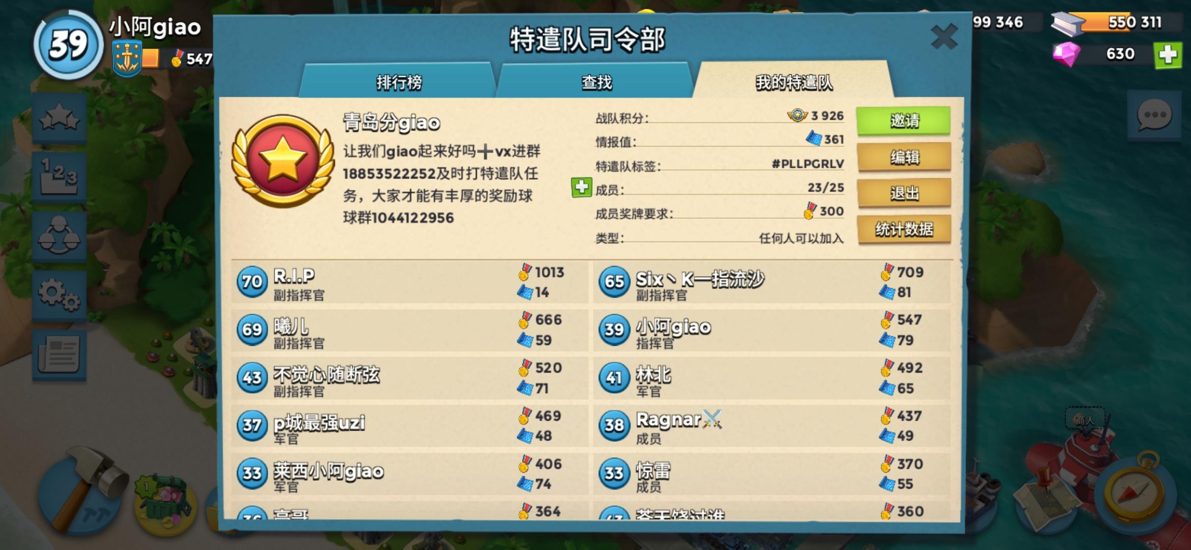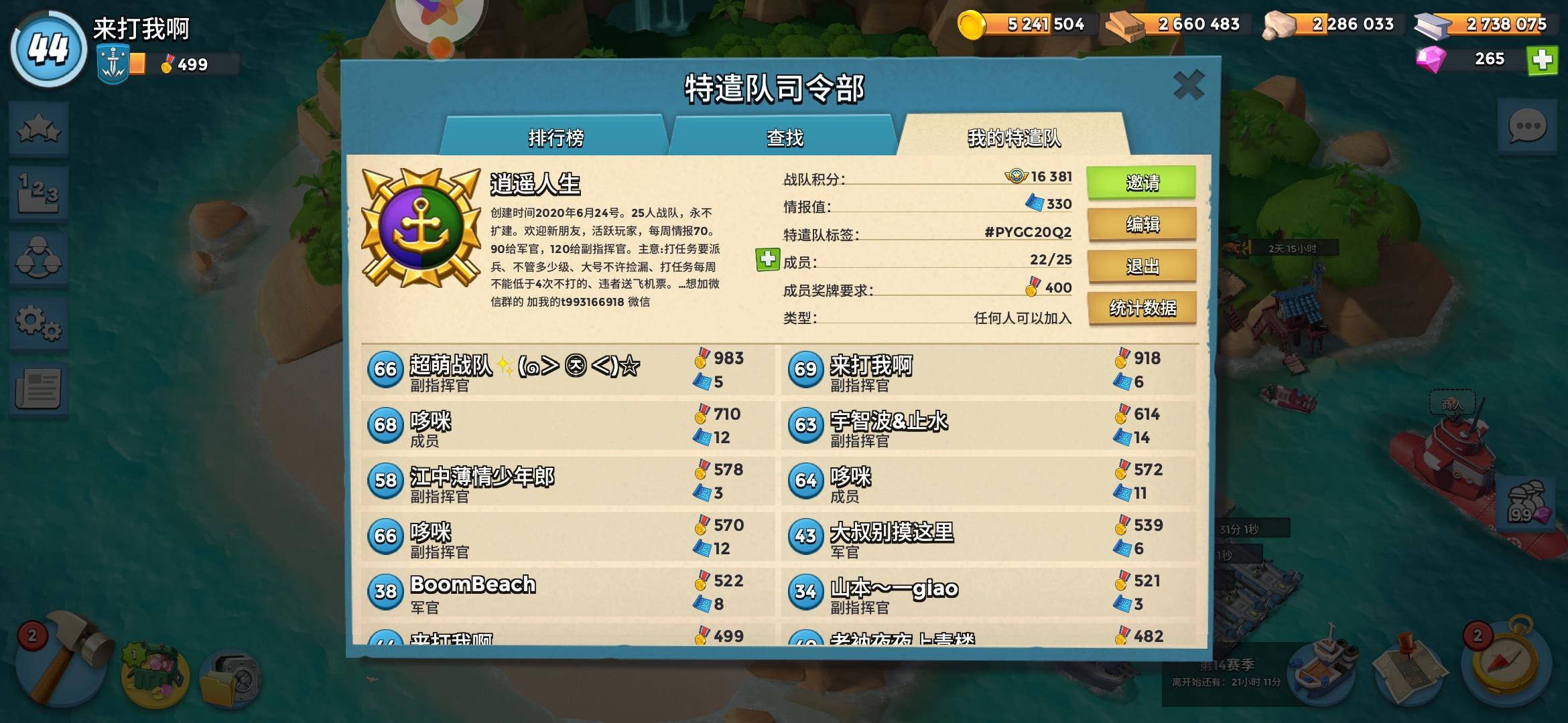 25人休闲特遣队招人,每天990固定27钻,欢迎活跃玩家,每周情报40以上,队伍有主力打任务。指挥官:白乌鸦