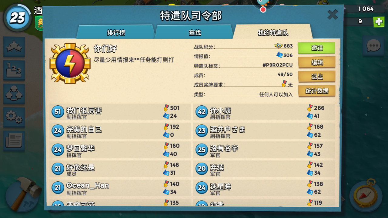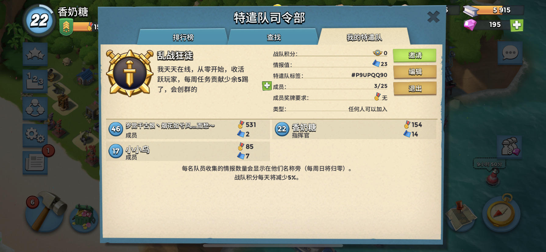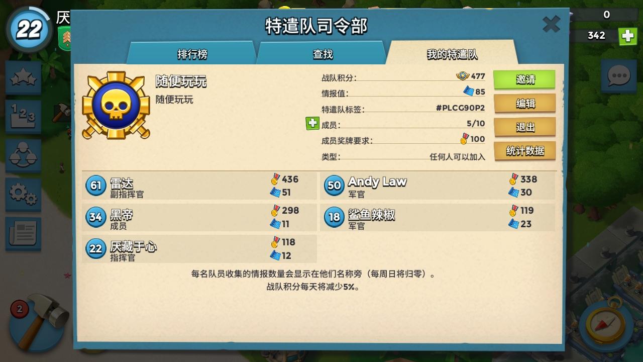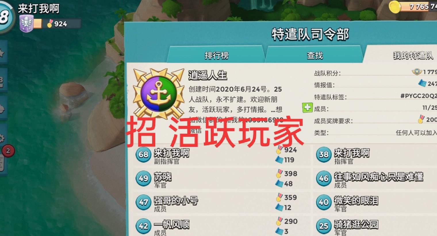 众所周知,这游戏谁玩的时间长谁厉害。家里有很多矿的当我没说。队员要求:1.长玩,只要喜欢这游戏一直玩就可以,不需要很肝也不需要氪金。2.有素质,友好,沟通顺畅。3.稍微有点智商,不是无脑冲,只要别用步兵怼喷火器,胖子怼加农炮就行。特遣队日常:通过沟通开特遣队,熟悉后可以眼神队伍,队伍固定后建群开始漫漫佛系休闲偶尔刺激的大家一起嗨之旅。队员福利:其实没啥福利,我算是老玩家,重开小号慢