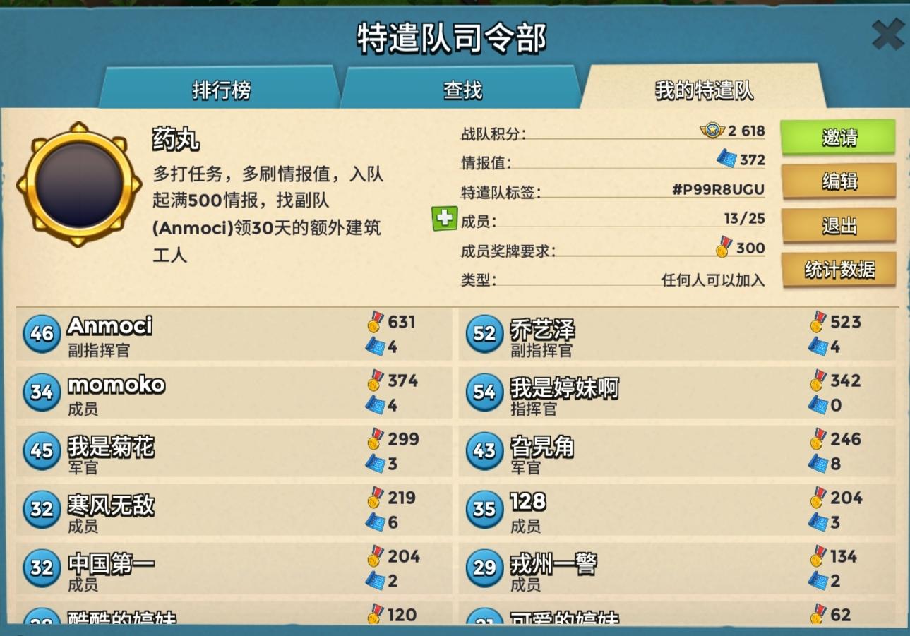 招60左右的活跃玩家,保底25砖石,要求活跃,多发言,任务跟着点,任务过了可以躺,队里有情报手