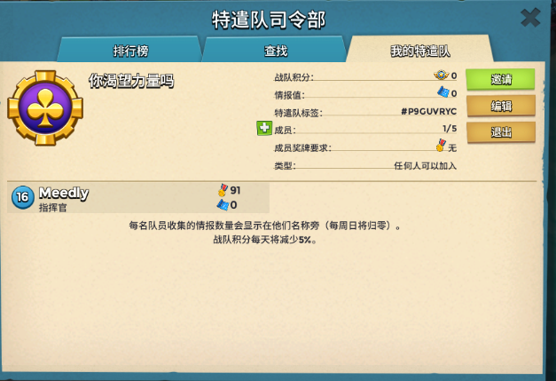 特遣队招人,主招情报兽、日常活跃玩家,要求如图。