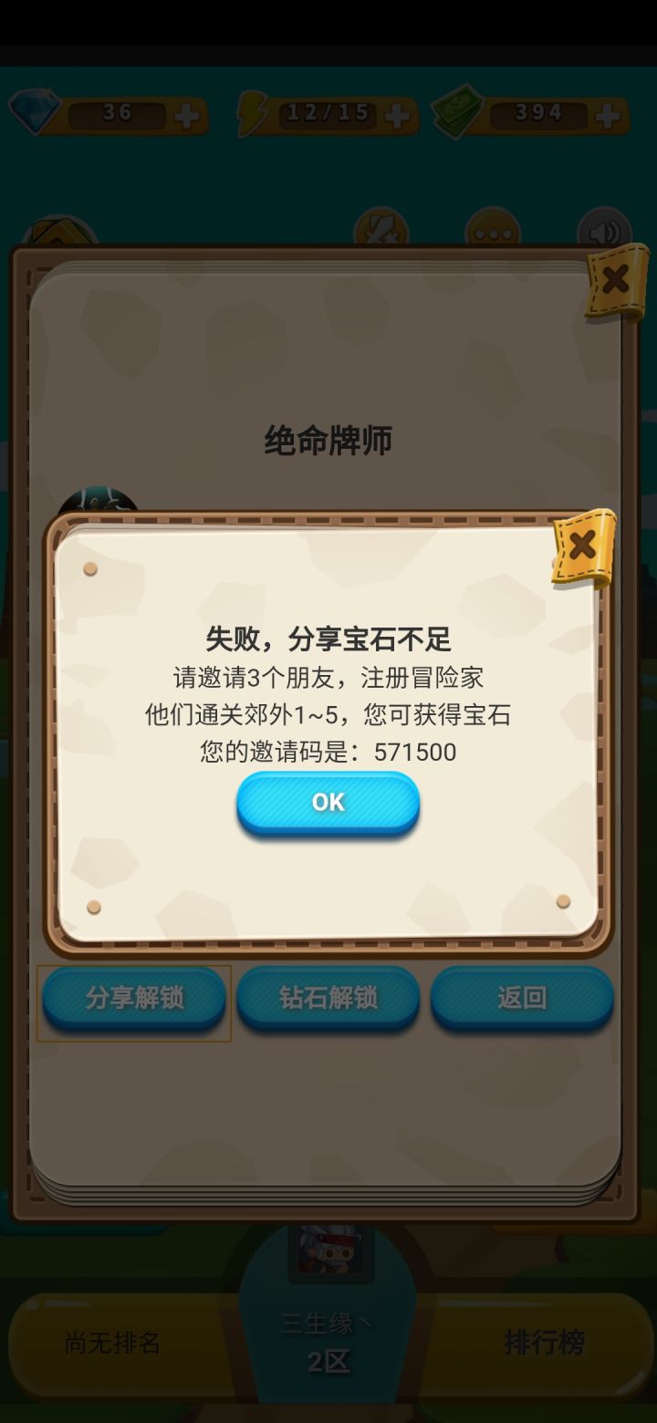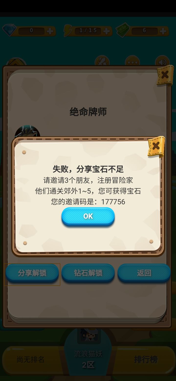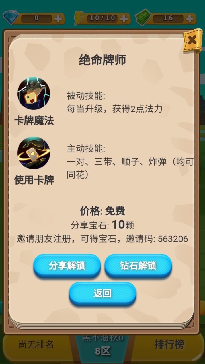 邀请码:335601。填邀请码得宝石
