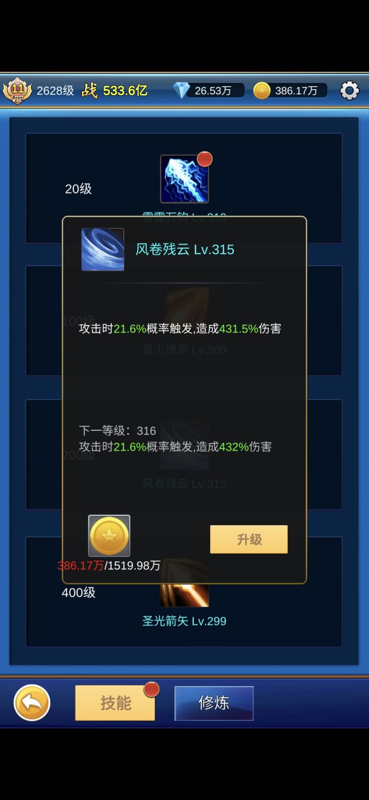 升级技能310+后金币暴增10倍