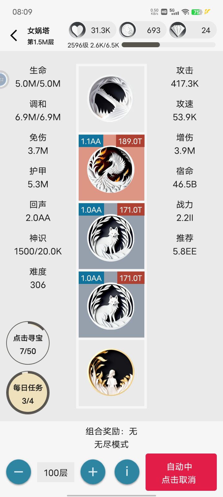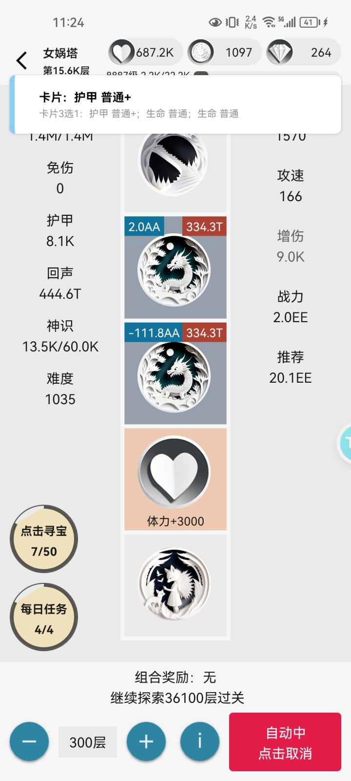 挂了一晚上爬了一百多万层,战力已经碾压几百万倍了,而用生命流或攻速流挂全自动就很容易在十几万层前暴毙。 晚上带着二十几万体力进去的,早上就只剩这点了,运气是真的差