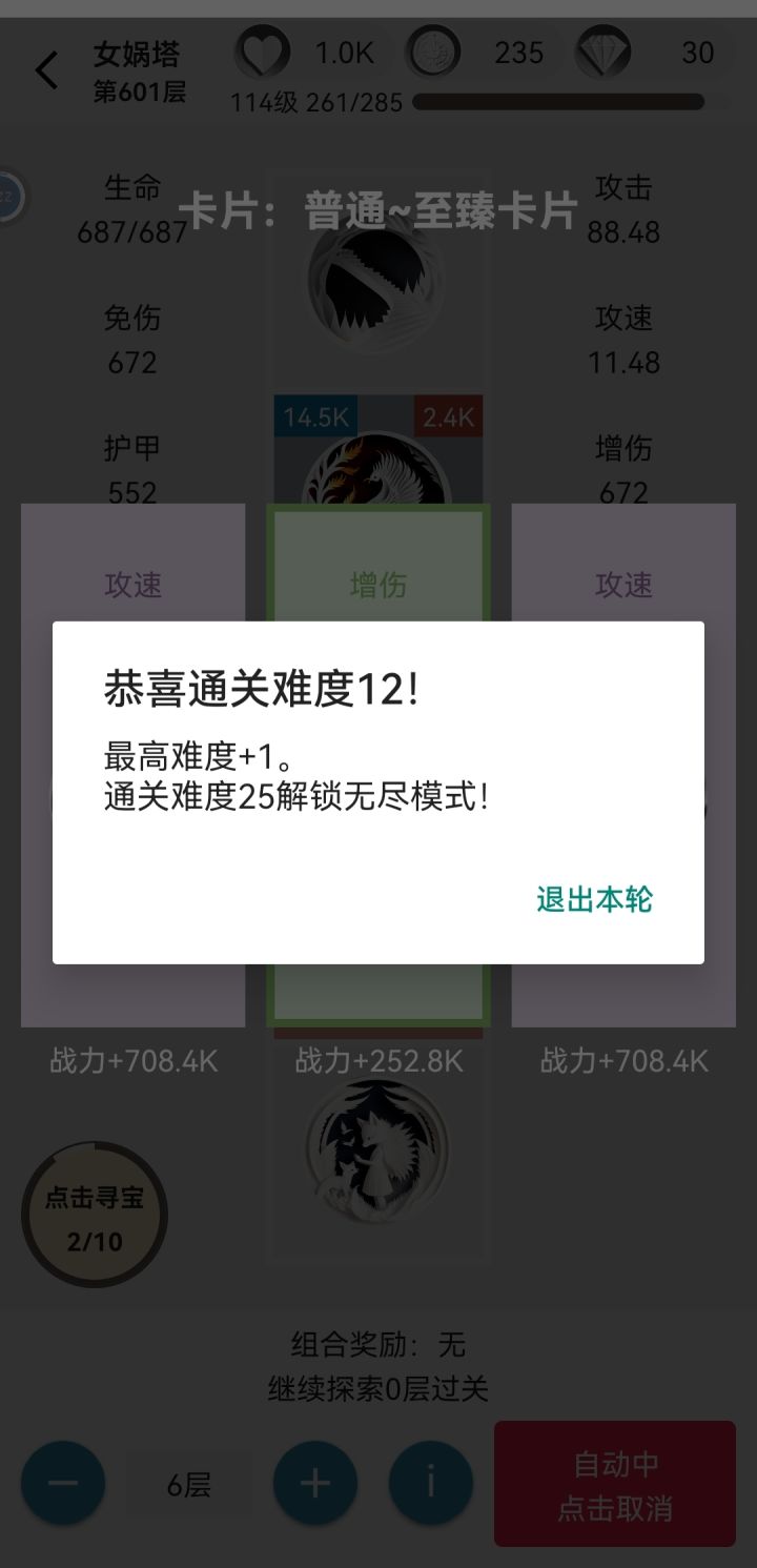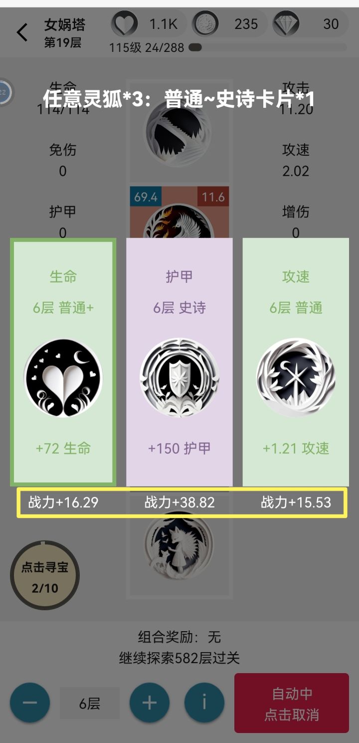 本着没有实践就没有发言权的精神,本咸鱼花了几天时间挂到了1000级,所以写下此篇攻略。1.【前期准备】tap签到7天✖️5钻 35钻兑换码pinglunjiangli9999 10钻加群奖励私聊 50钻硬币啥的前期没多少意义2.【爬塔】加点是六边形战士,平均分配,选卡也简单,战力高的就行。六边形战士是为了前期不豹毙,游戏中卡的数值是和你的基础属性有关的,你偏科豹毙的可能性太大了。选卡