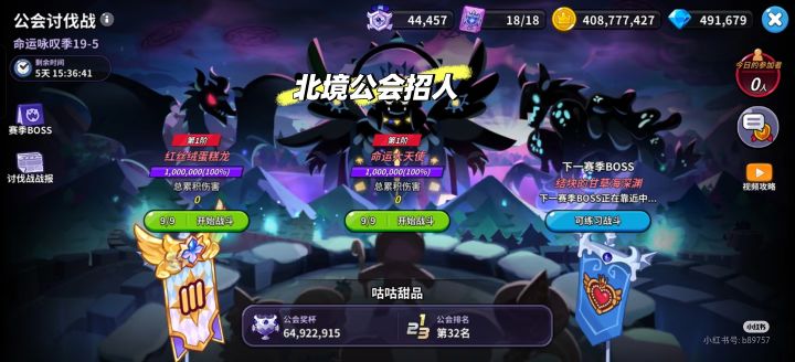 北境公会收人,上期31名,再来几个朋友应该就能进30名!!目前三四个位置。伤害要求:天使一刀25亿,甘草海20亿,蛋糕龙12亿~最后能每天上线点点 懂得更新阵容。#冲呀!饼干人:王国 #游戏日常 #发现好游戏 #饼干人王国