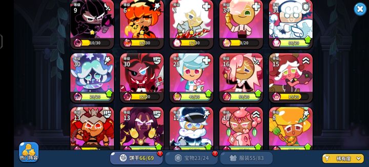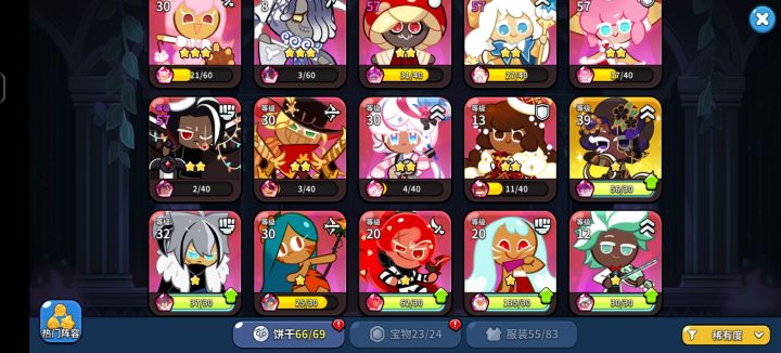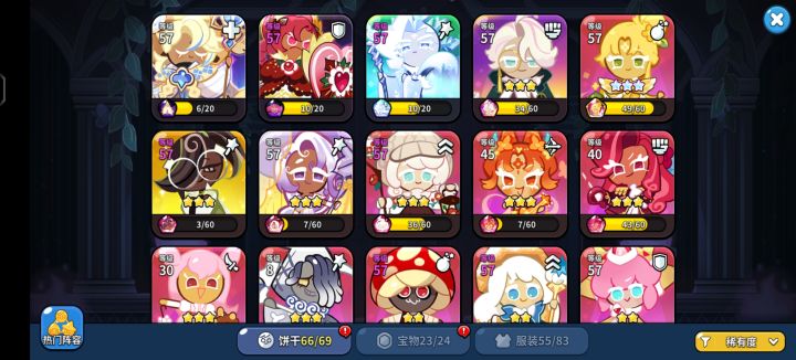 可换:甄嬛·莞嫔饰演甄嬛。甄嬛·莞贵人饰演甄嬛。甄嬛·莞常在饰演甄嬛。狐妖饼干饰演华妃。金桂饼干饰演沈眉庄。黑莓饼干饰演沈眉庄。安陵容饼干饰演安陵容。石榴饼干饰演安陵容。墨鱼饼干饰演安陵容。叶澜依饼干饰演叶澜依。丛林战士饼干饰演叶澜依。甜辣酱饼干饰演叶澜依。皇后饼干饰演皇后。浓缩咖啡饼干饰演皇后。山茶花饼干饰演皇后。紫蘑菇饼干饰演苏公公。