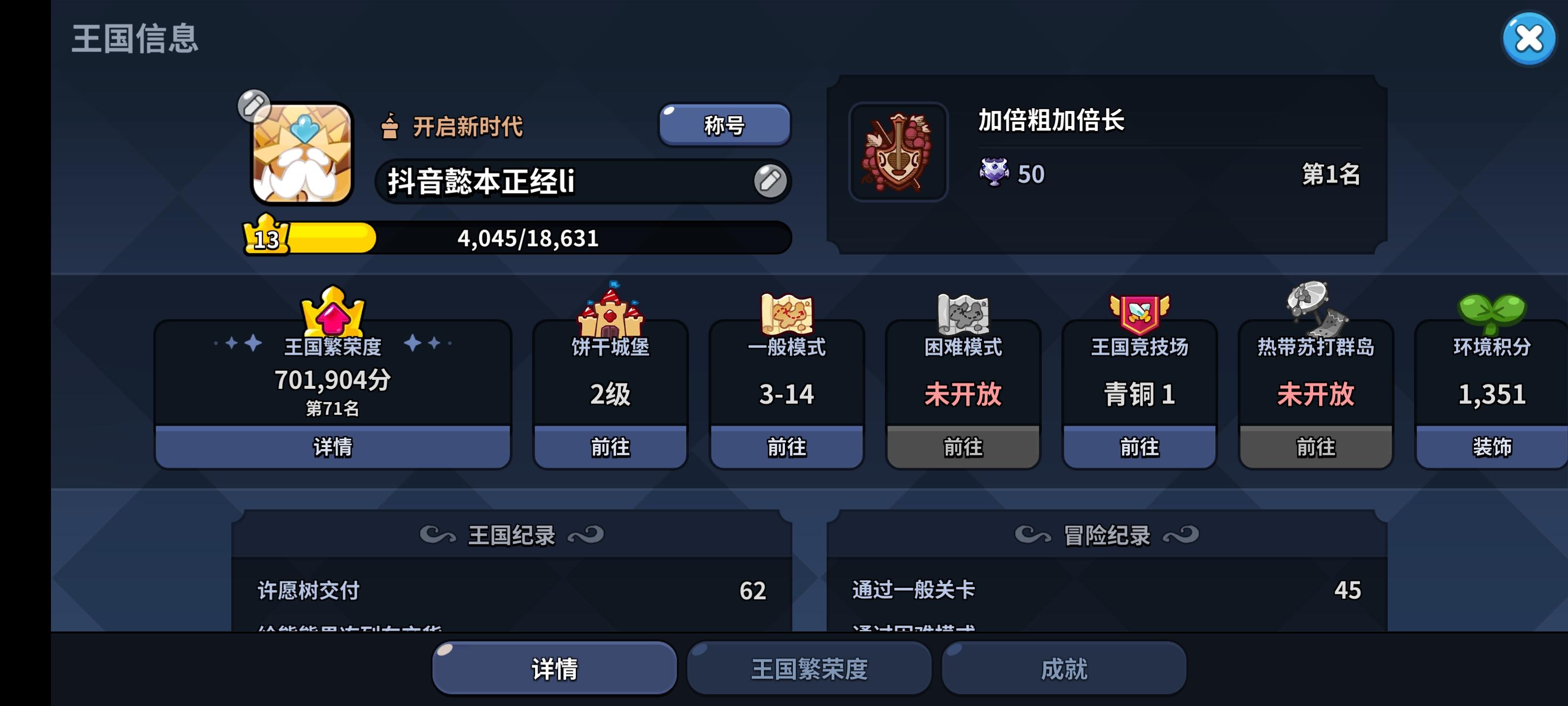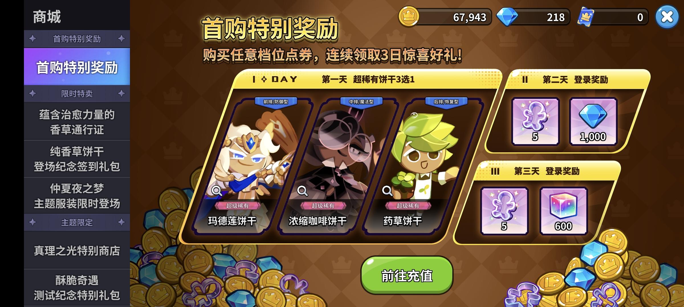 总玩下差不多有三四天好点:饼干可爱,美术组做的很精致。配配音CV很符合小饼干的。神态动作很贴合角色差点:如图。不管是活动还是签到任务,等其他的东西比较凌乱,在手机上面看的话就比较乱,一点都不分明别类。特别的杂乱。完全没有心思看这些任务的心情还有一还有一点,就是这些充值的东西太贵了。像学生党之类的根本就穿不起,基本就是个氪金游戏。没有任何的优惠啥的便宜的活动价格的偏高。性价比不高