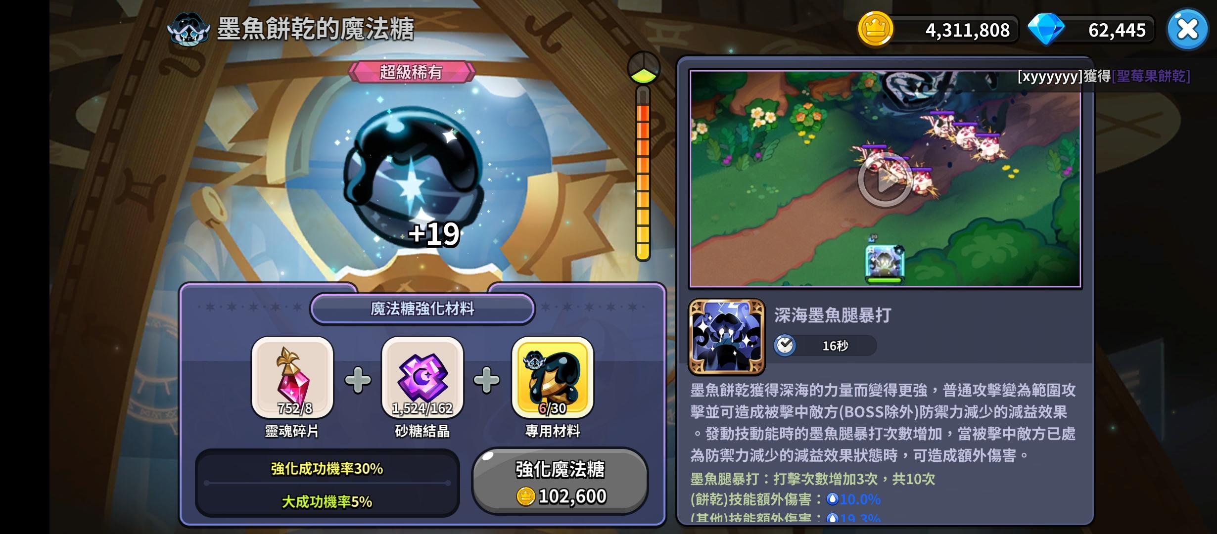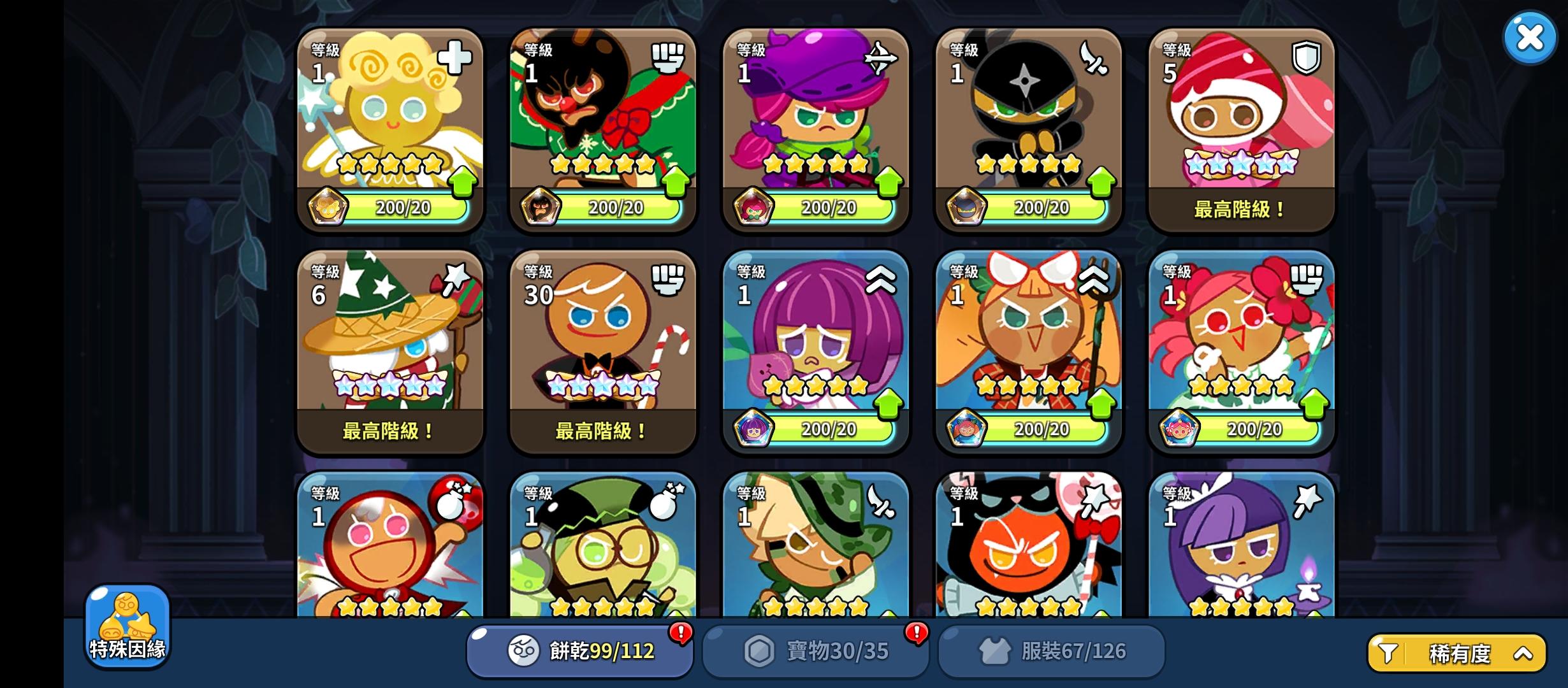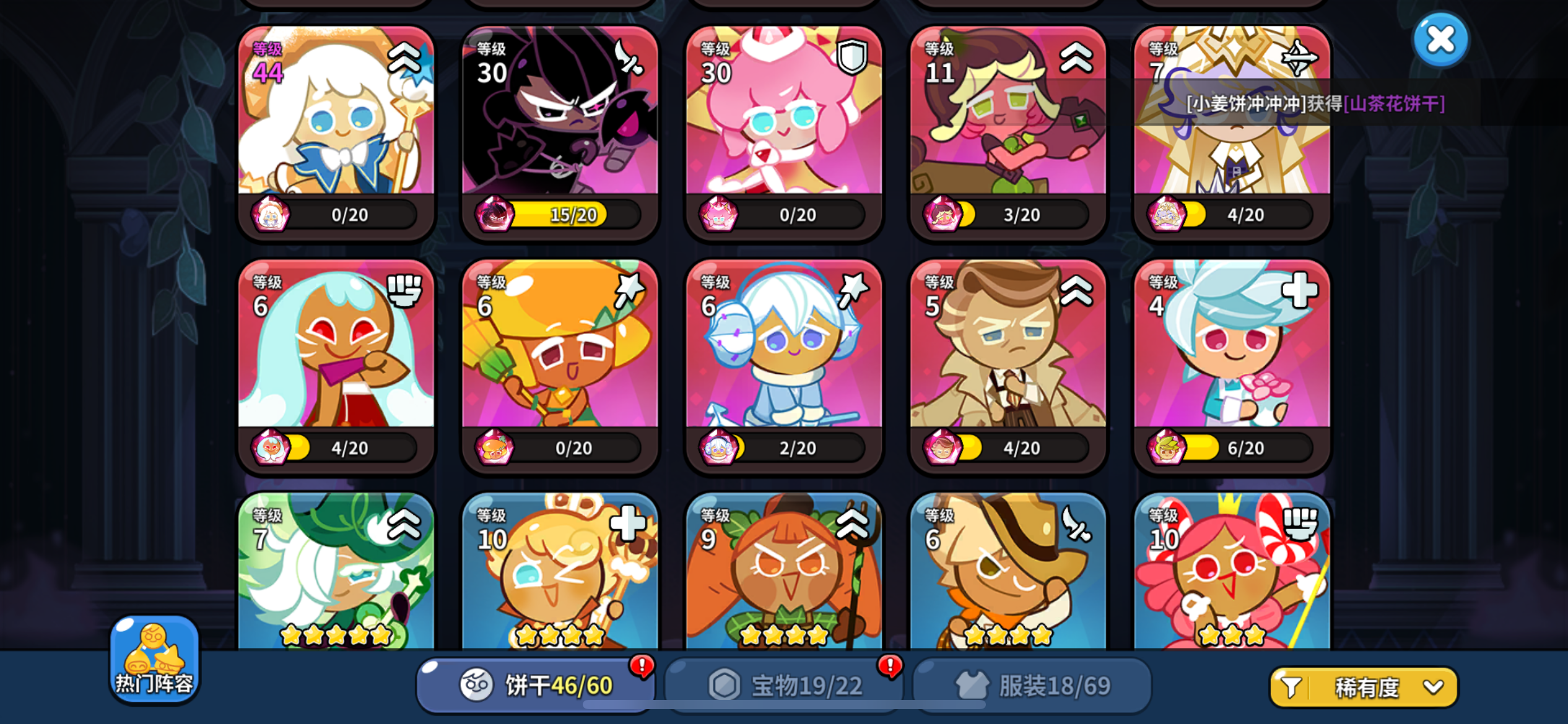 饼干最高75级技能也是75级,满星是超越5。后面会增加魔法糖功能提高饼干技能属性,提升挺大,材料都在工坊里做。
