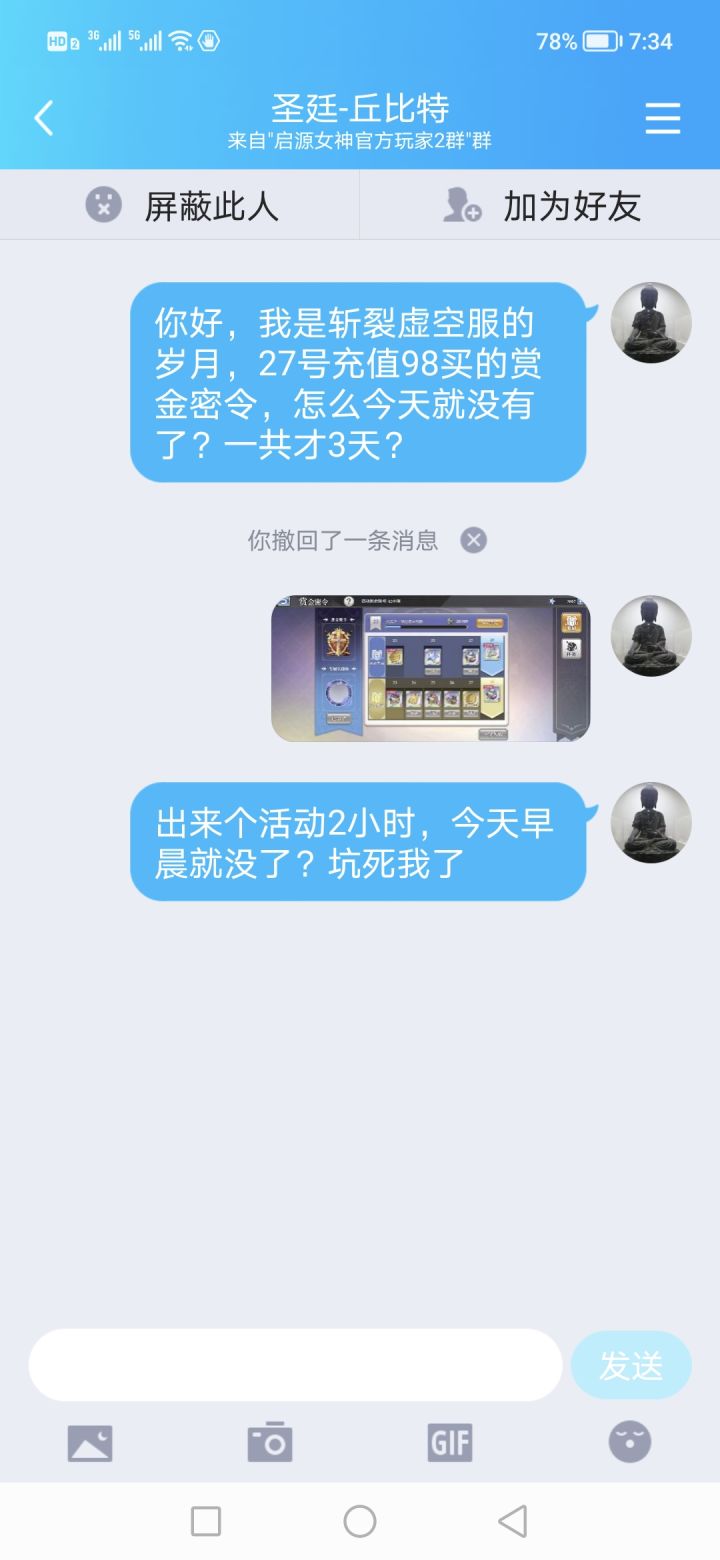 我买了98元的赏金密令,可是第三天就过期了,昨晚上一看你们还有时间!这东西难道不是从我购买时间来算吗?如果不是为什么购买的时候没有提示?而且时间哪里也太隐蔽了!啥意思???非要让我们白嫖???加了群反映了结果私聊没搭理的,加好友没加的,在群里说没搭理的艹!请问怎么解决!!!!!