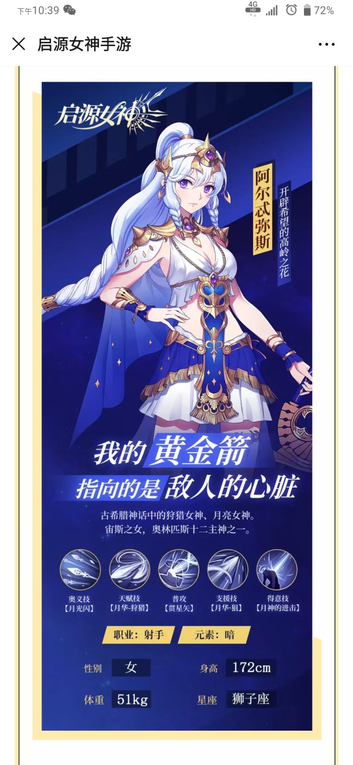 天选者们,大家好呀!梅林带着新消息来咯ヾ(@^▽^@)ノ嘿嘿,我相信这个新消息绝对是大家期待已久的呢!本周的重!磅!消!息!就是——又有两位SSR女神加入了启源的大家庭当中✿✿ヽ(°▽°)ノ✿下面梅林就为大家介绍下月之华章:阿尔忒弥斯和月之夜曲:嫦娥这两位女神大大吧!!月之华章:阿尔忒弥斯持弓的少女踮着轻盈的脚步,箭之所向守护的是亚马逊部族的荣光,那年她在祖先面前低下头,虔诚地为部族立下