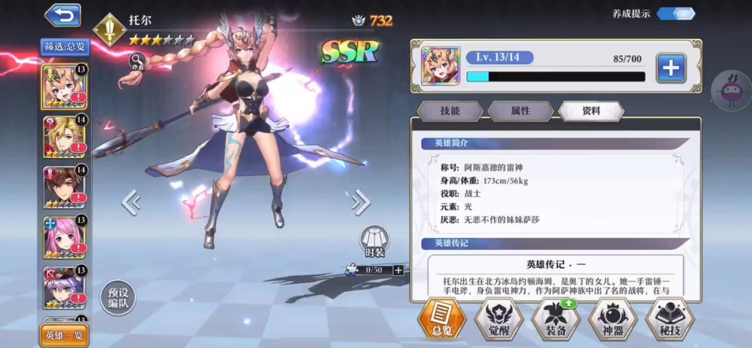 这款游戏先不说欧非,快乐就完事了先说下思路,刷初始必须有梅林,梅林,梅林!(没有的就点个赞再走吧)——普通池子抽取。既然有了梅林,就开始死嗑活动 地池子,主要是瓦妹肯定会出来(还有一个核心路西法,反正也会送,不着急)。顺便带着其他成员脱贫致富。主要成员:梅林,瓦妹,路西法,洛基,美杜莎。30级以前如图:主场:梅林,瓦妹,洛基,爱丽丝,美杜莎。挂件:1光,2地(可上罗宾汉,路西法)。梅